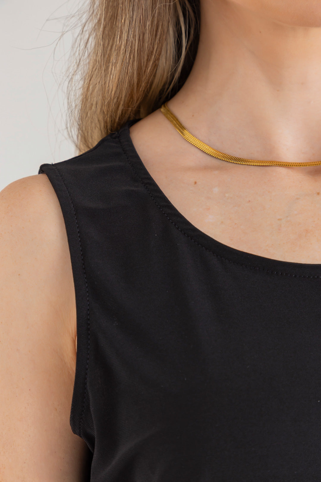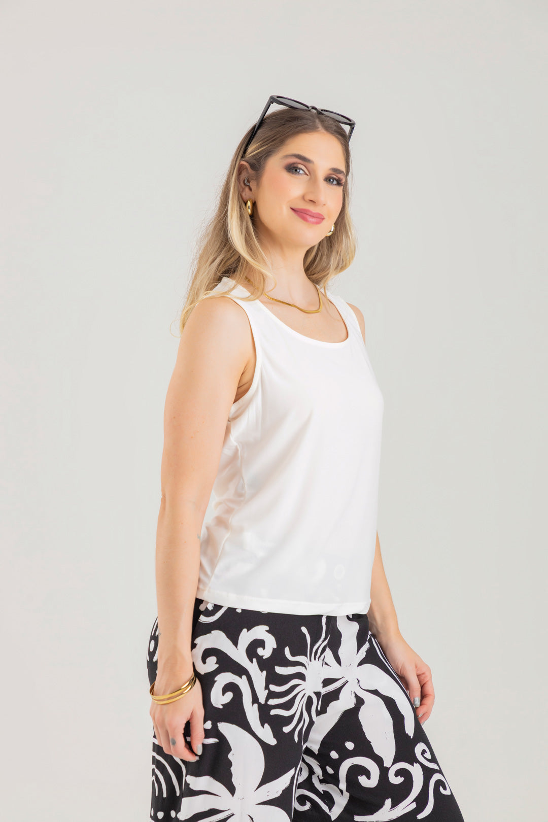 Blusa básica con escote redondo y manga sisa. Elaborada en Acetato fondo entero.