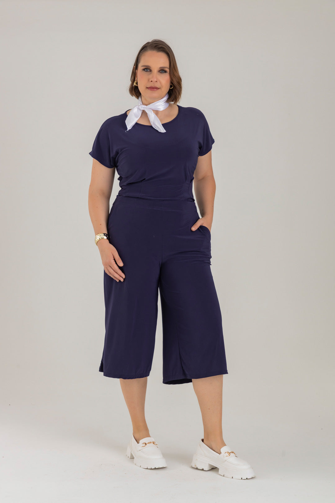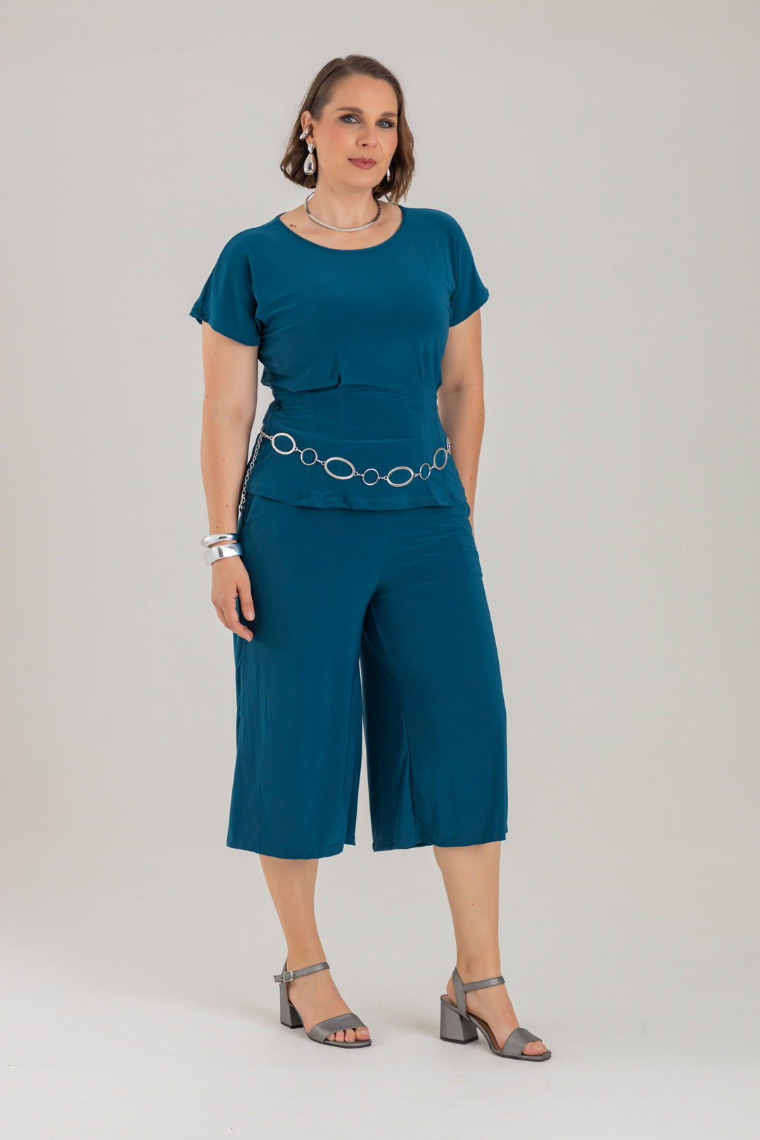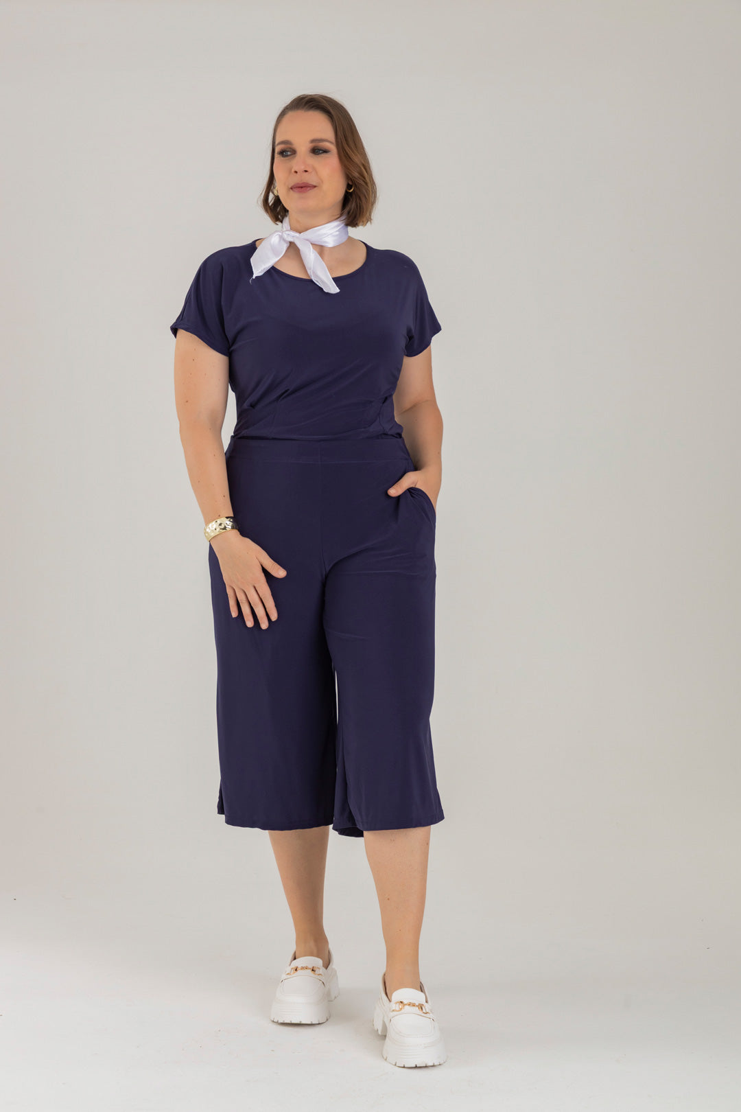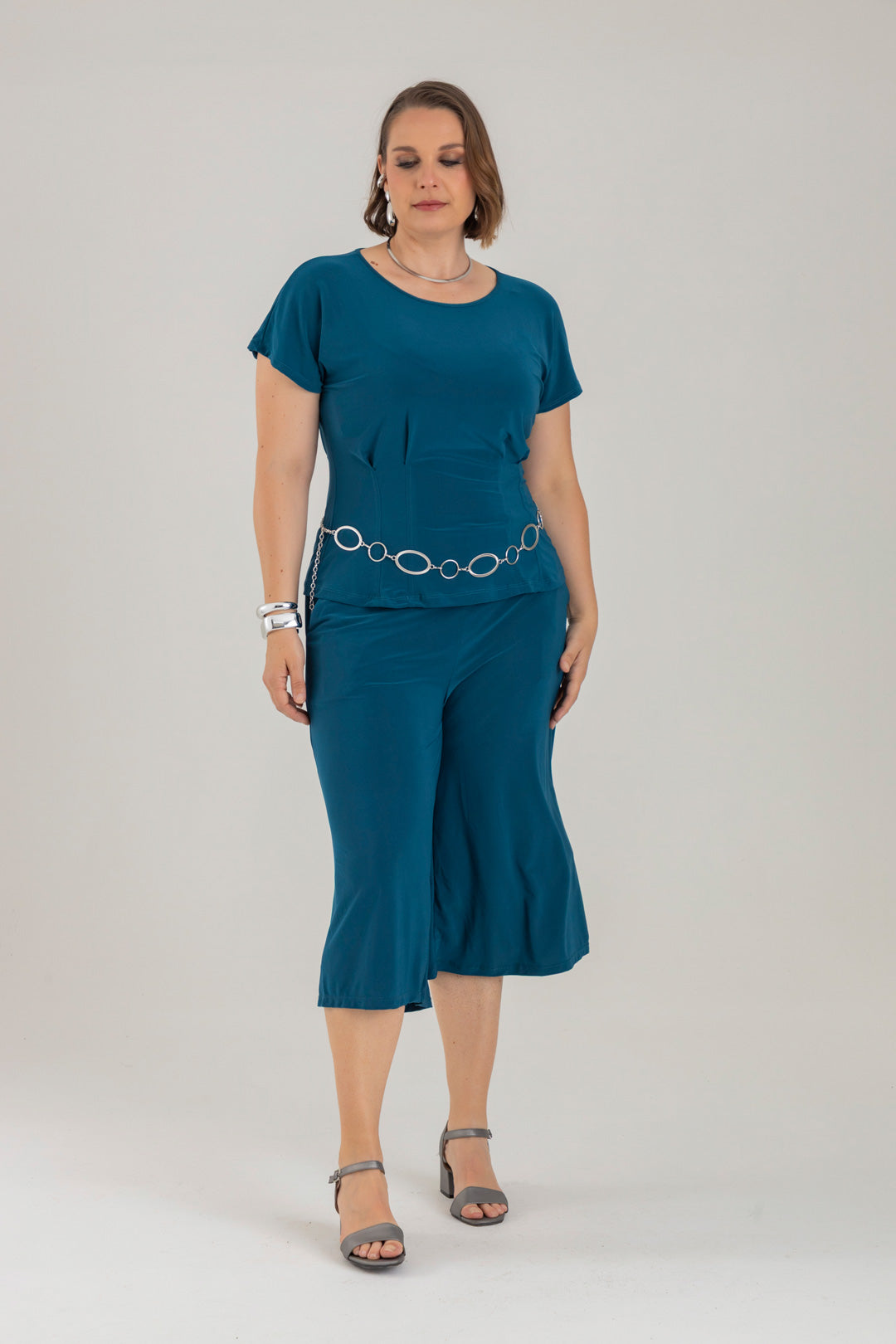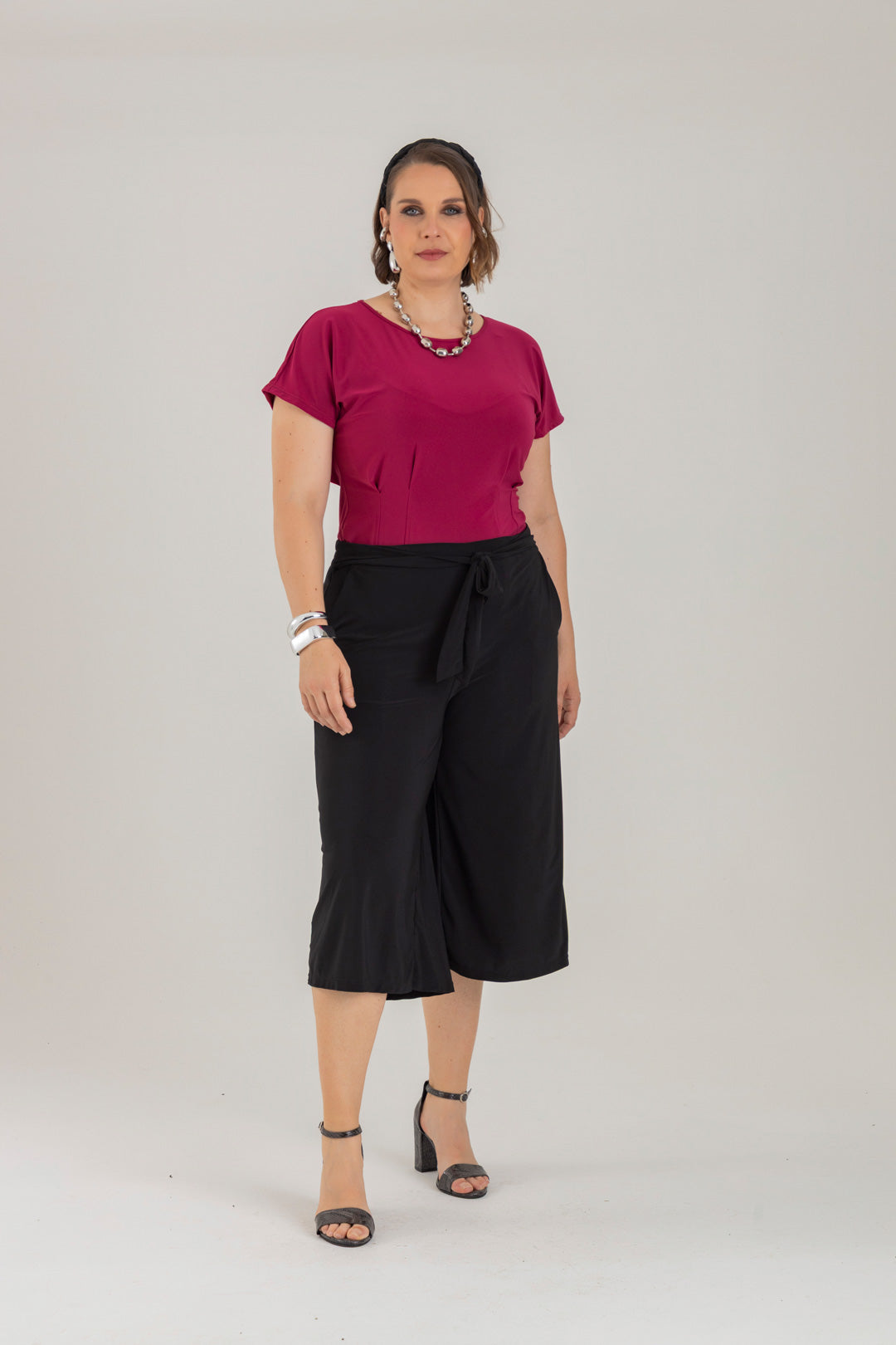 Blusa cuello redondo con manga incorporada y detalle de pinzas. Elaborada en Acetato fondo entero.