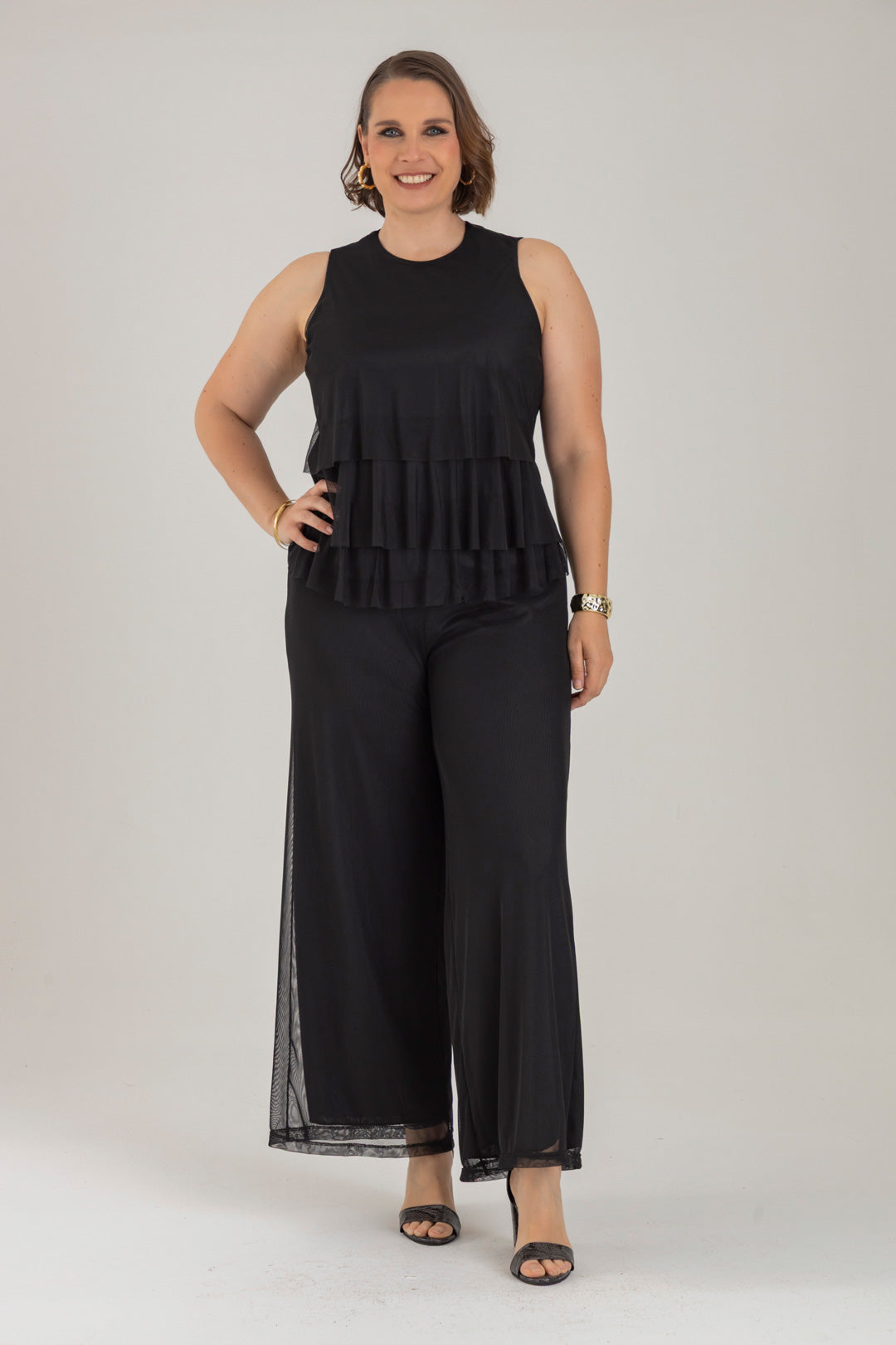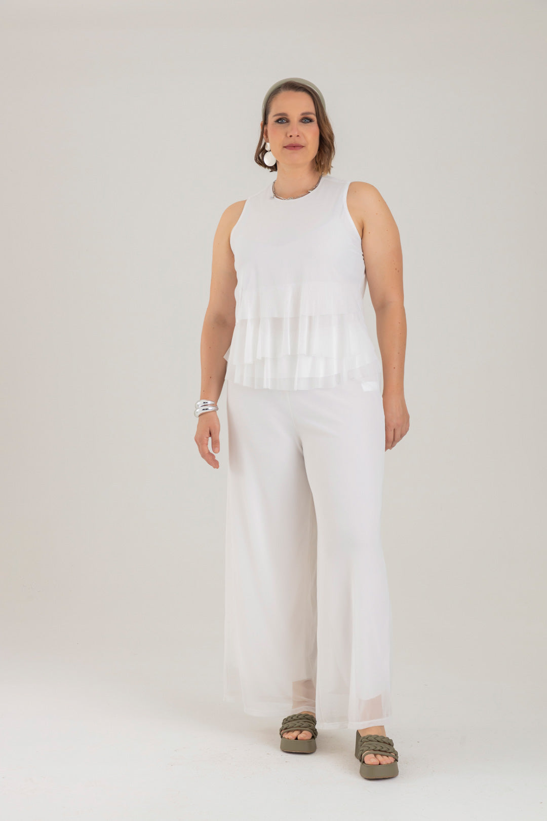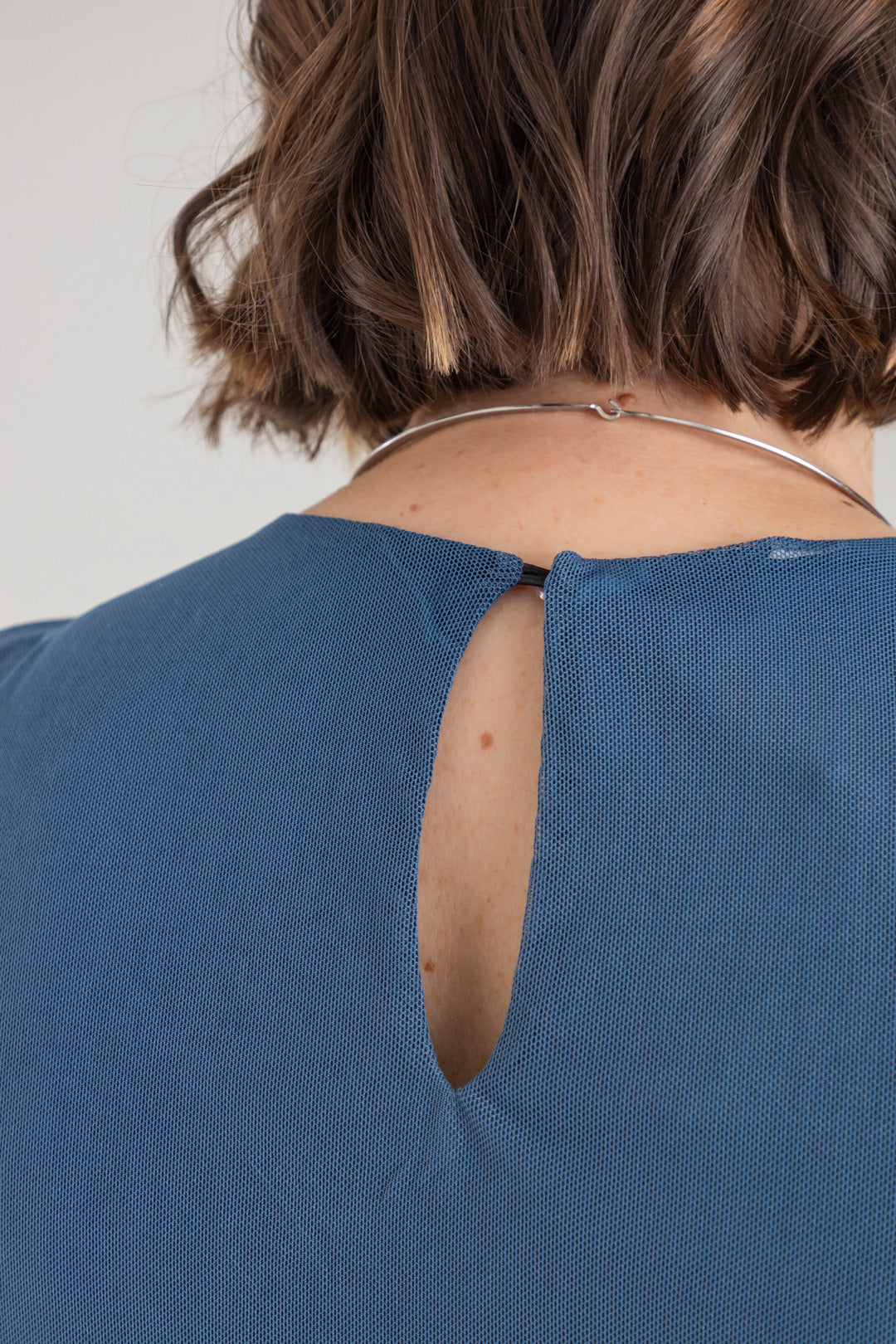 Blusa en capas con escote redondo. Elaborada en Mallatex fondo entero.