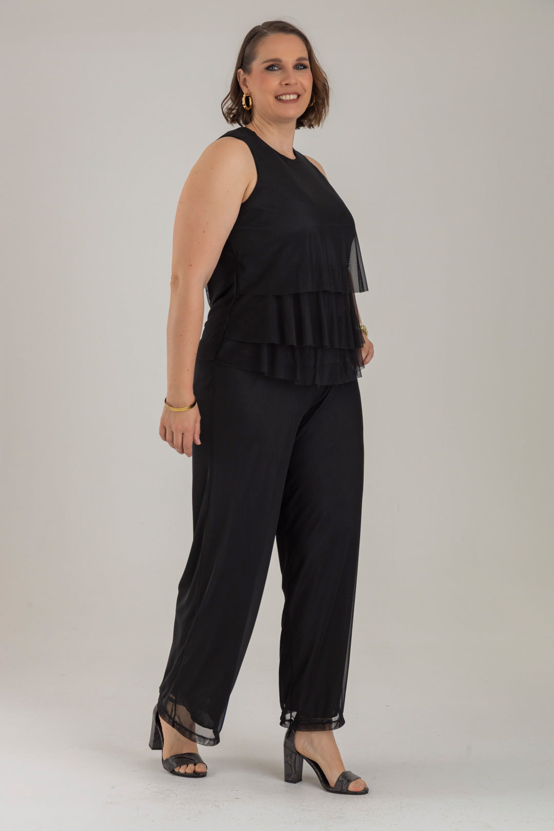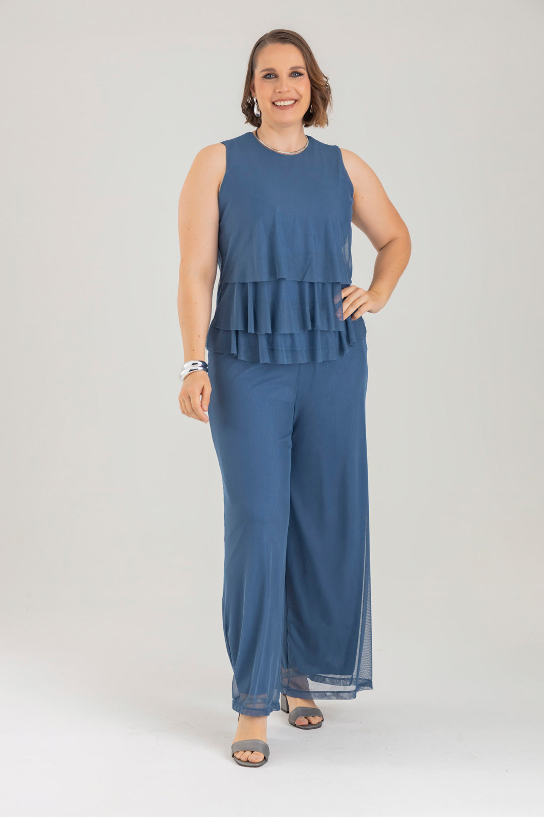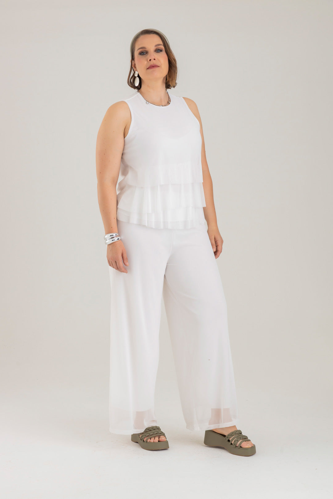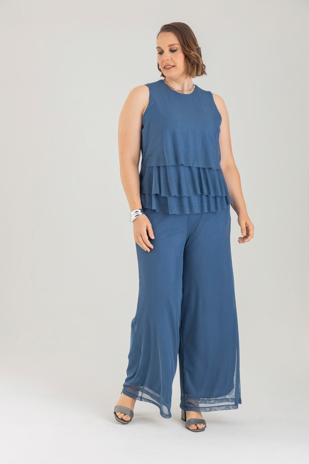 Blusa en capas con escote redondo. Elaborada en Mallatex fondo entero.