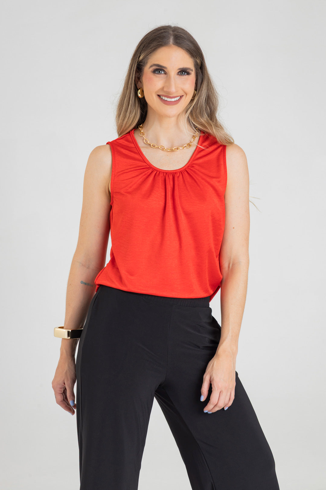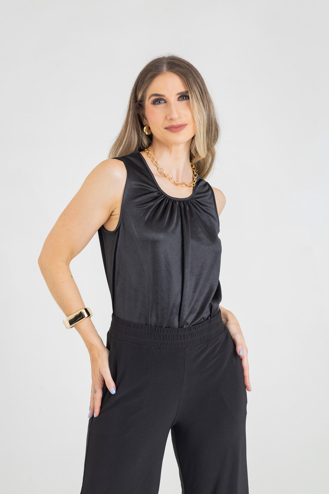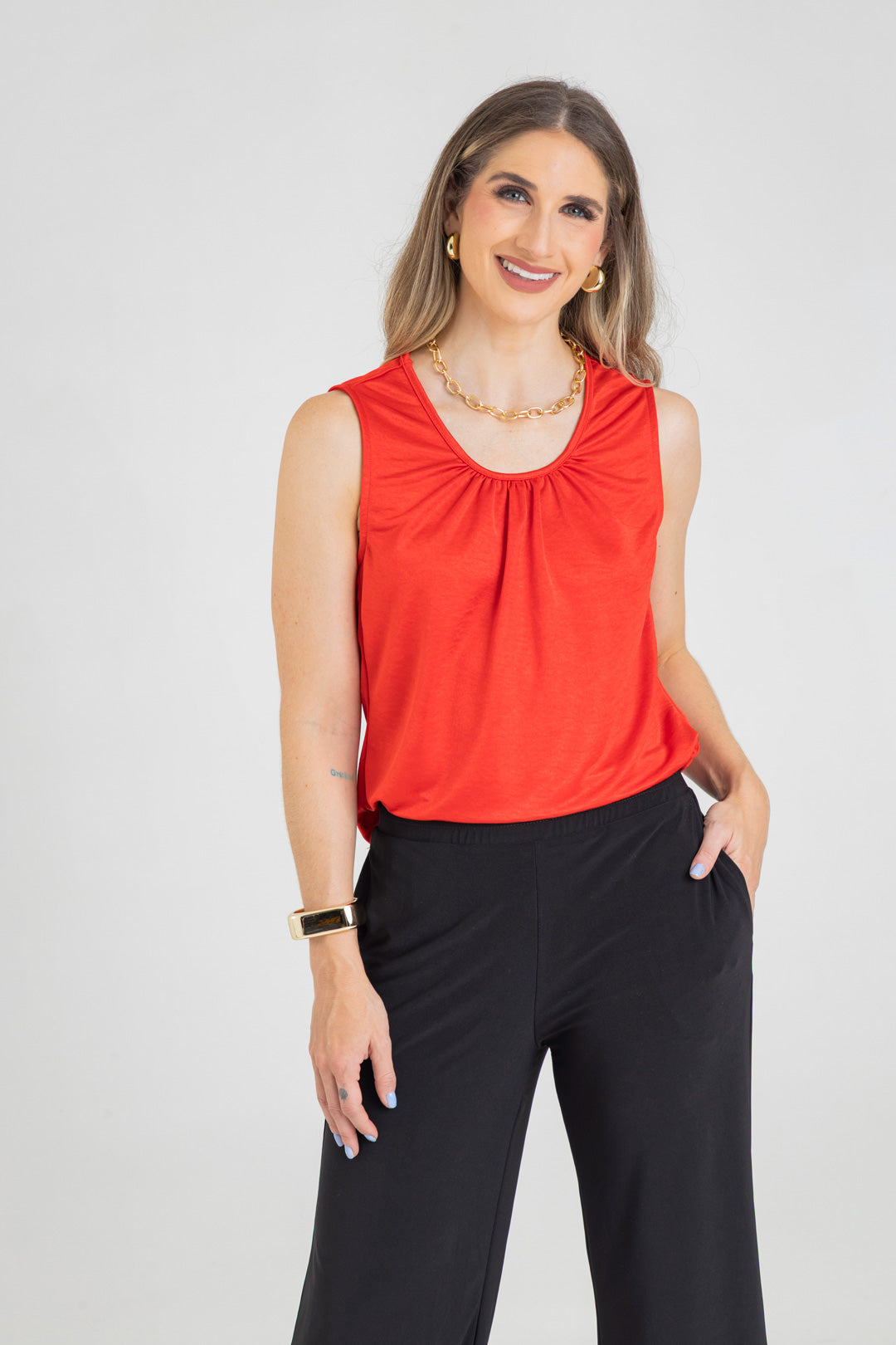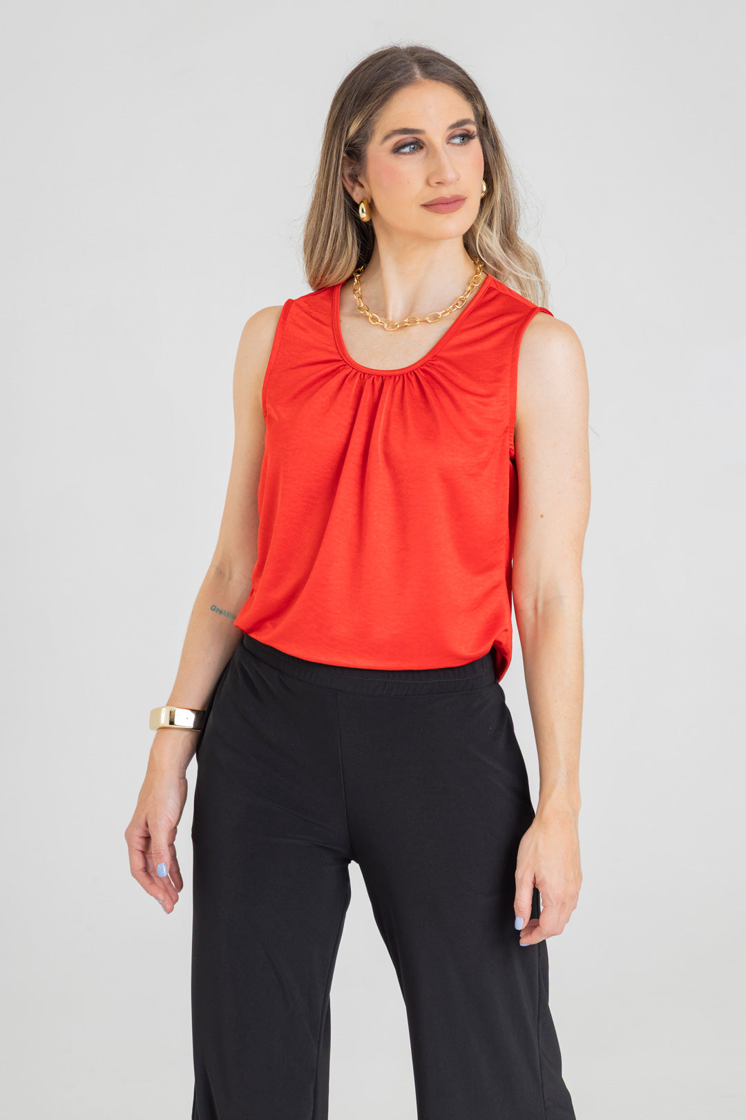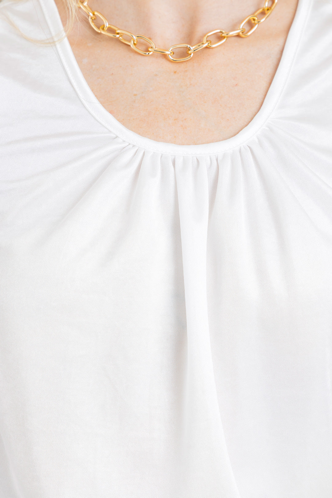 Blusa manga sisa, escote redondo con recogido. Elaborada en Poliester con efecto.