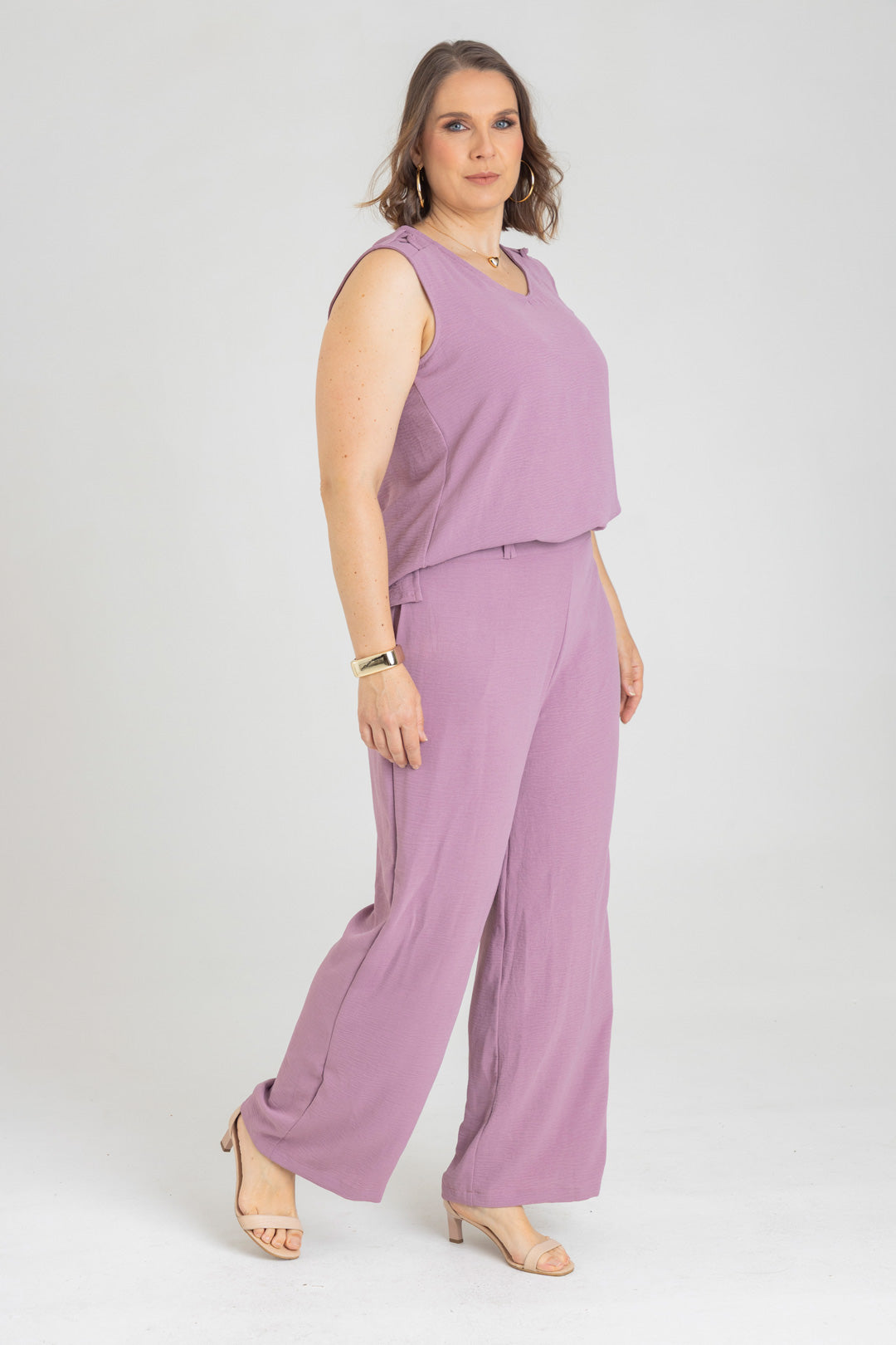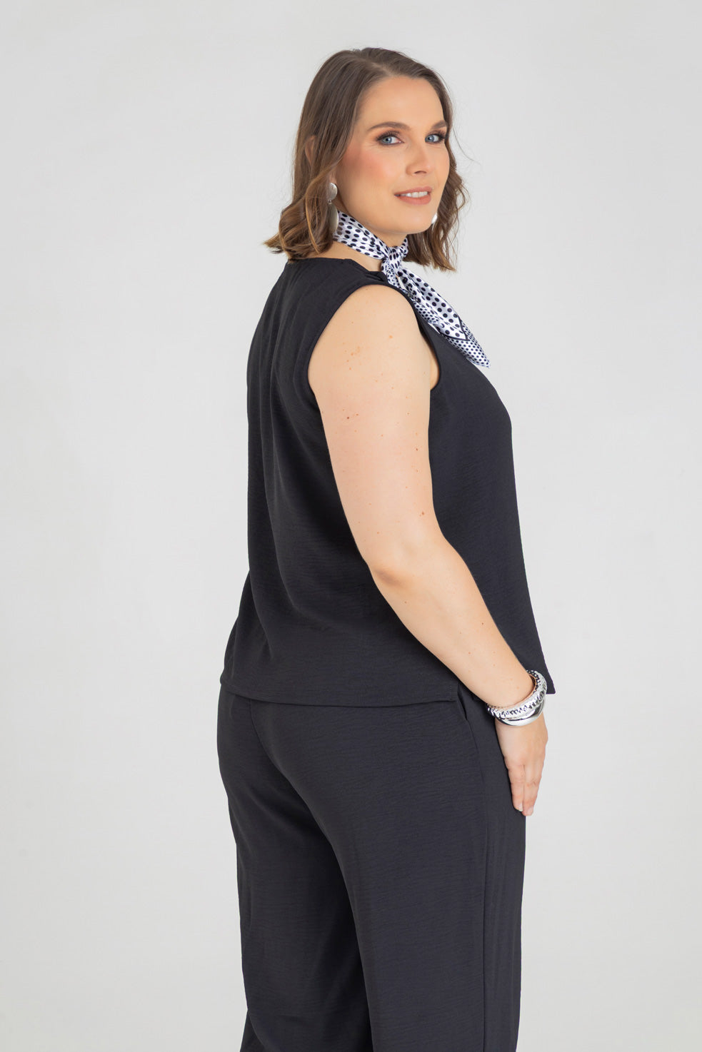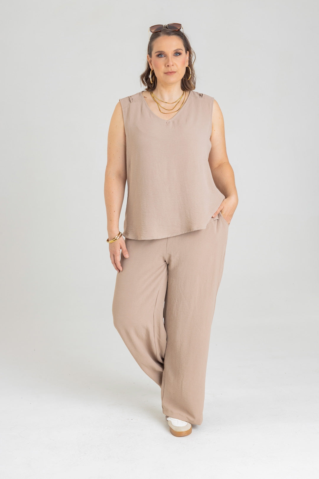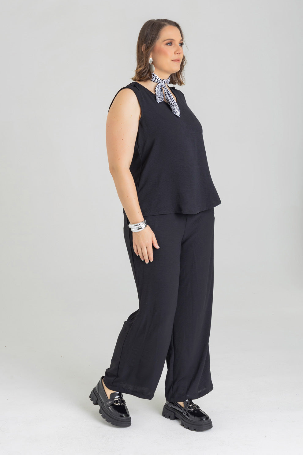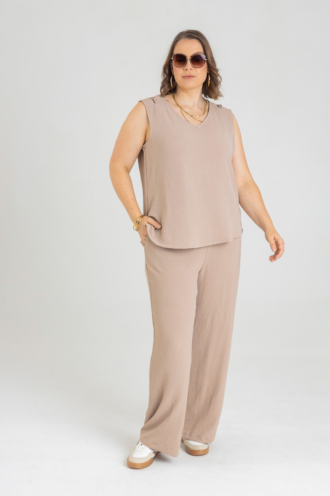 Blusa sisa, escote en V y detalle en hombros de pasadores. Elaborada en Poliester fondo entero.