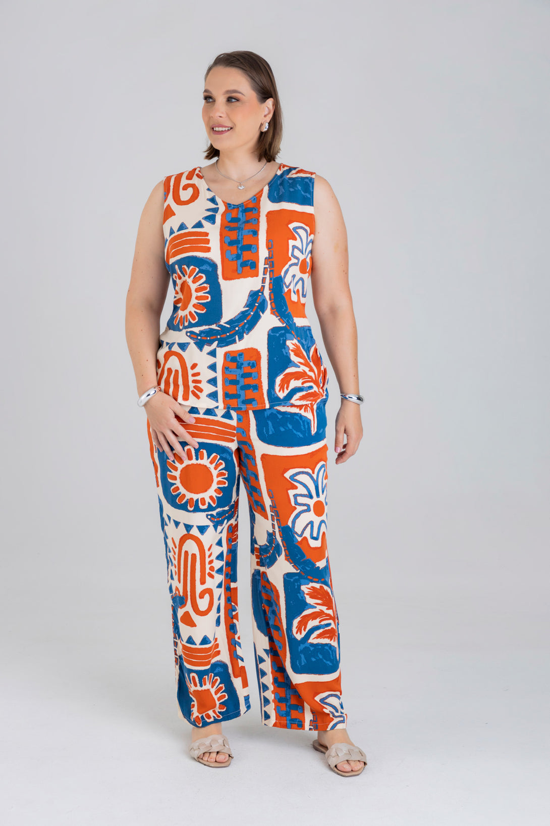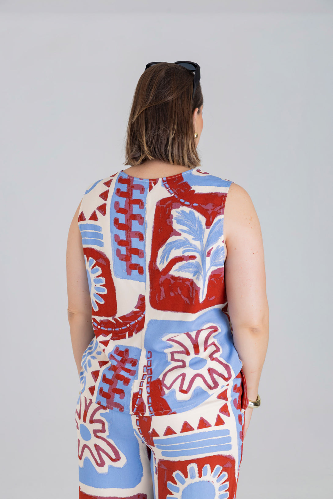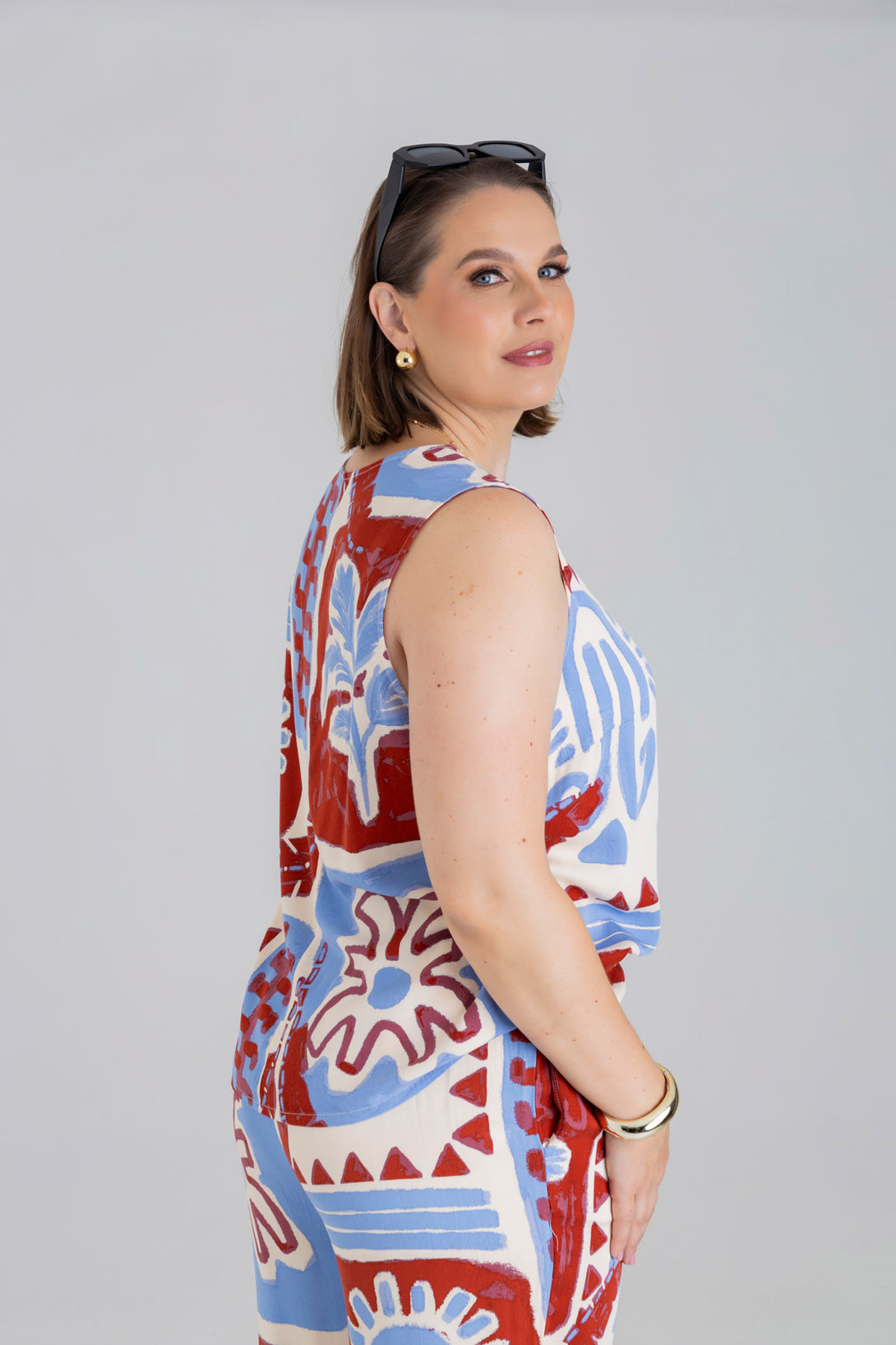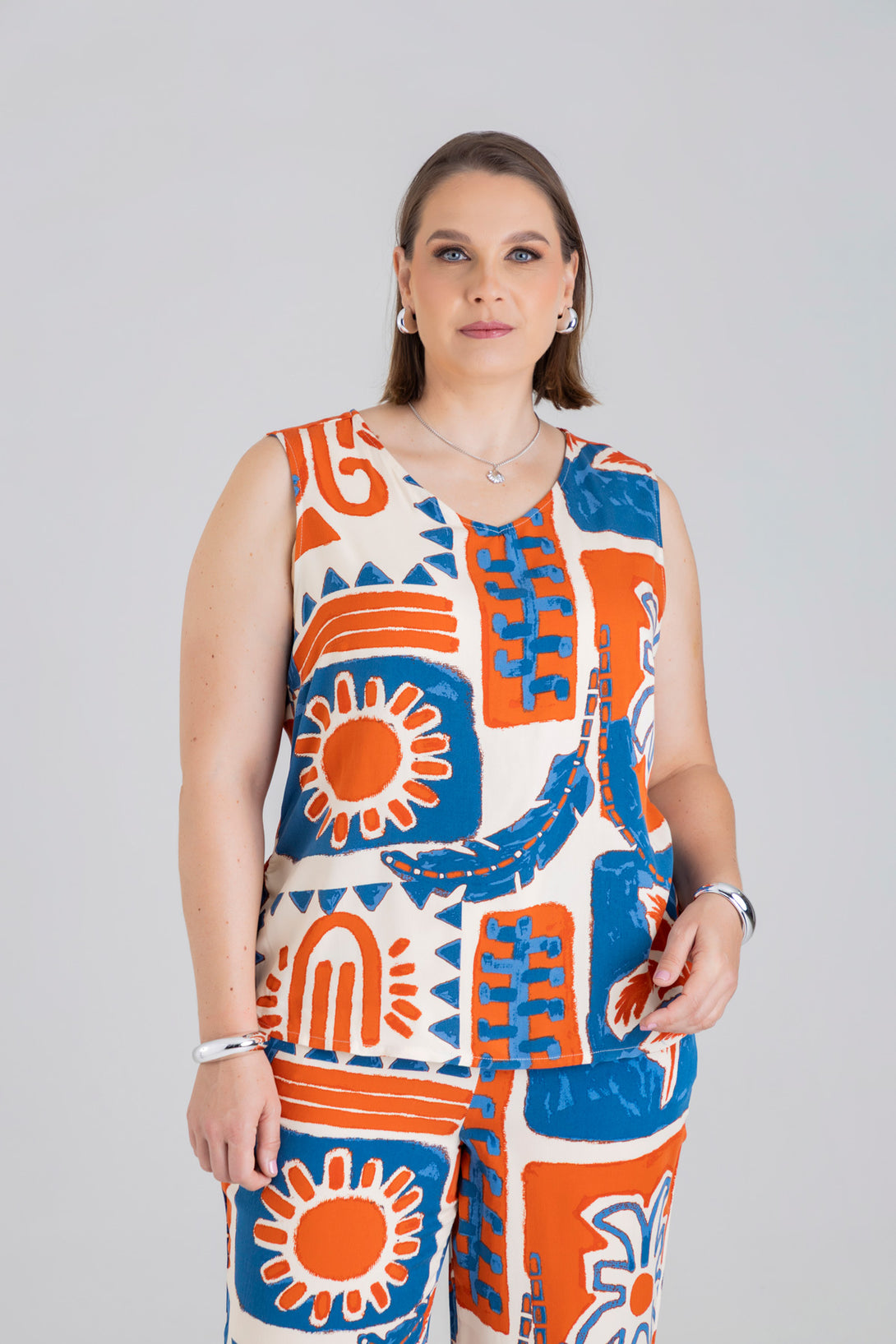 Blusa sisa con escote en V. Elaborada en Rayón estampado.