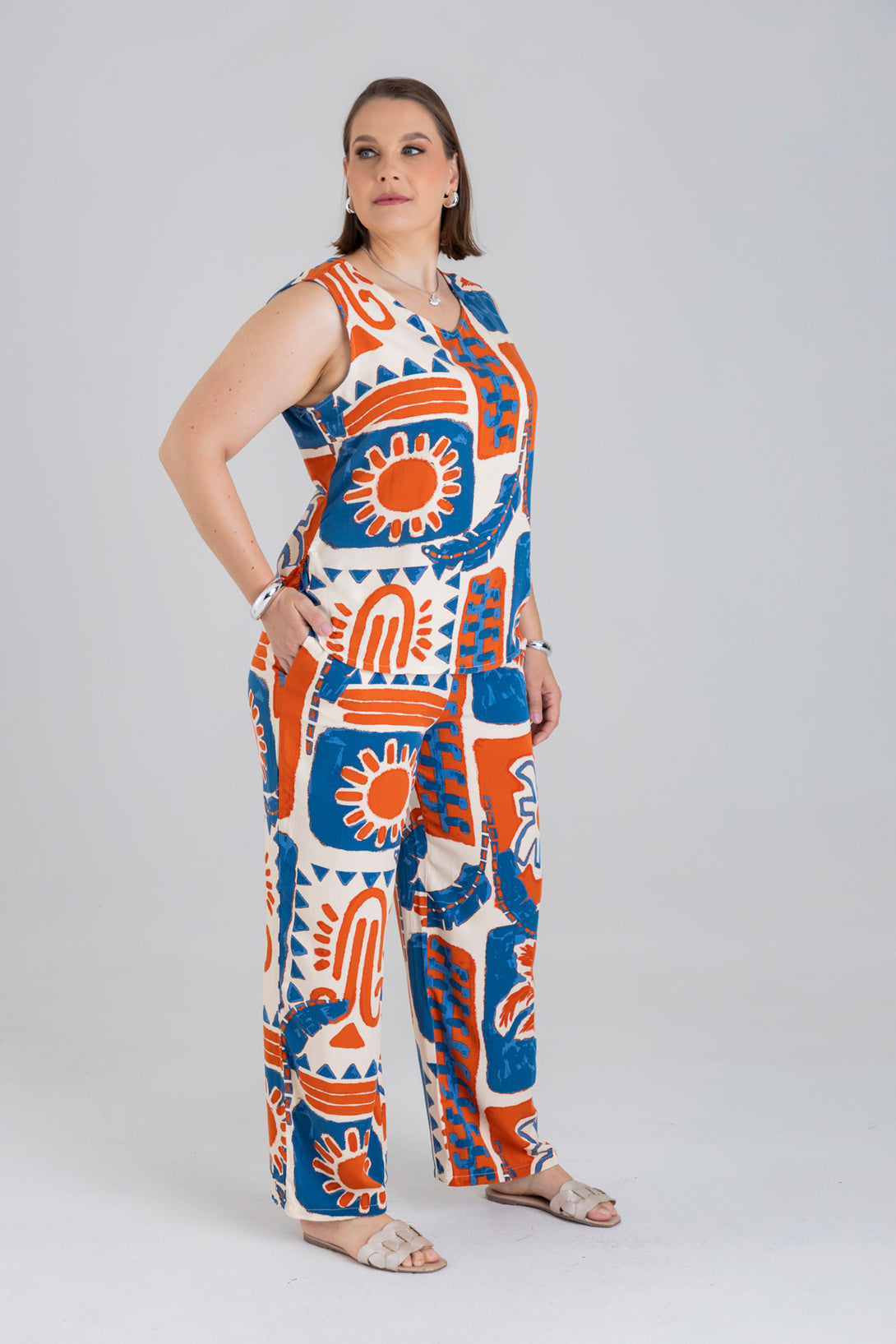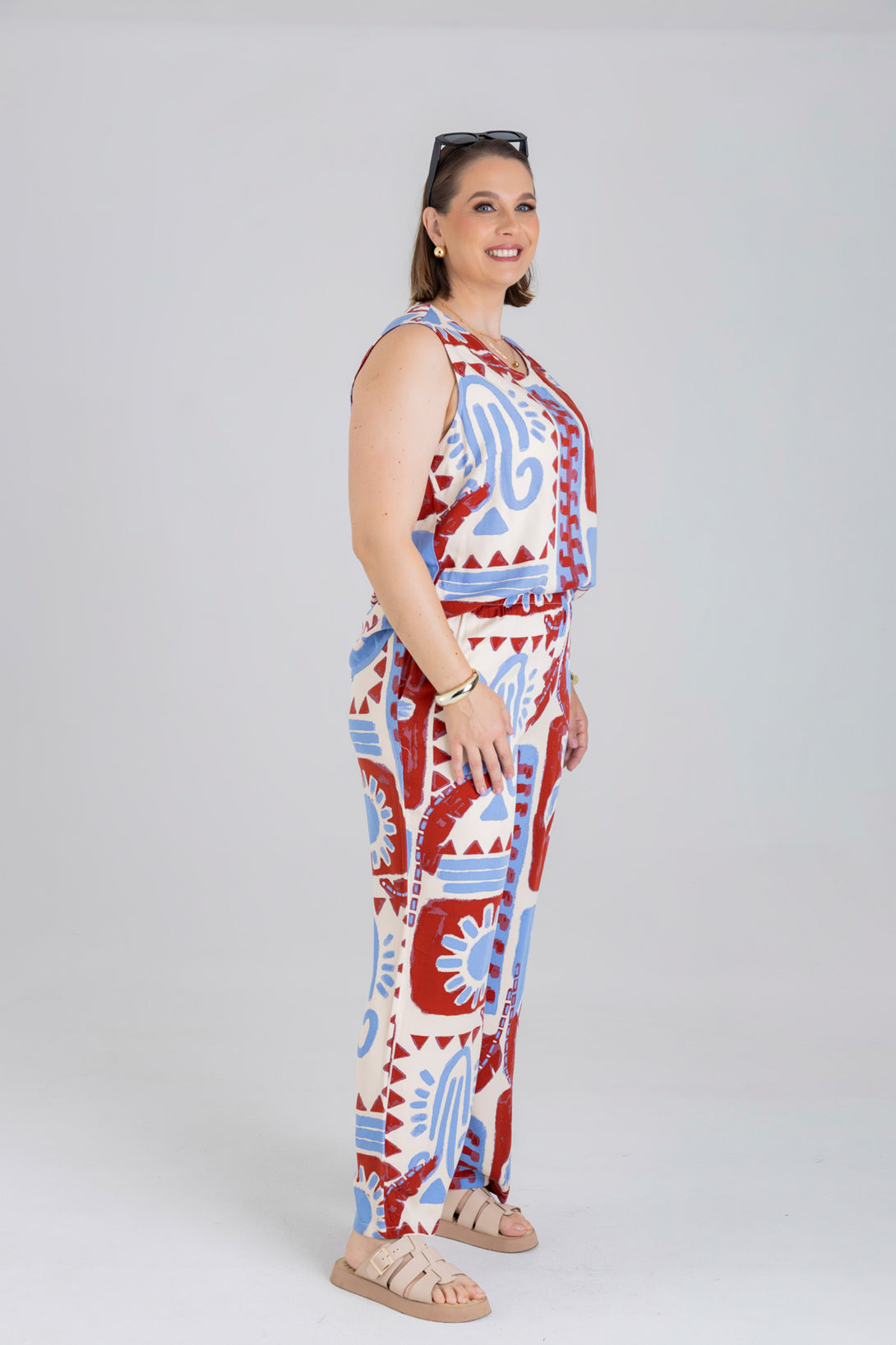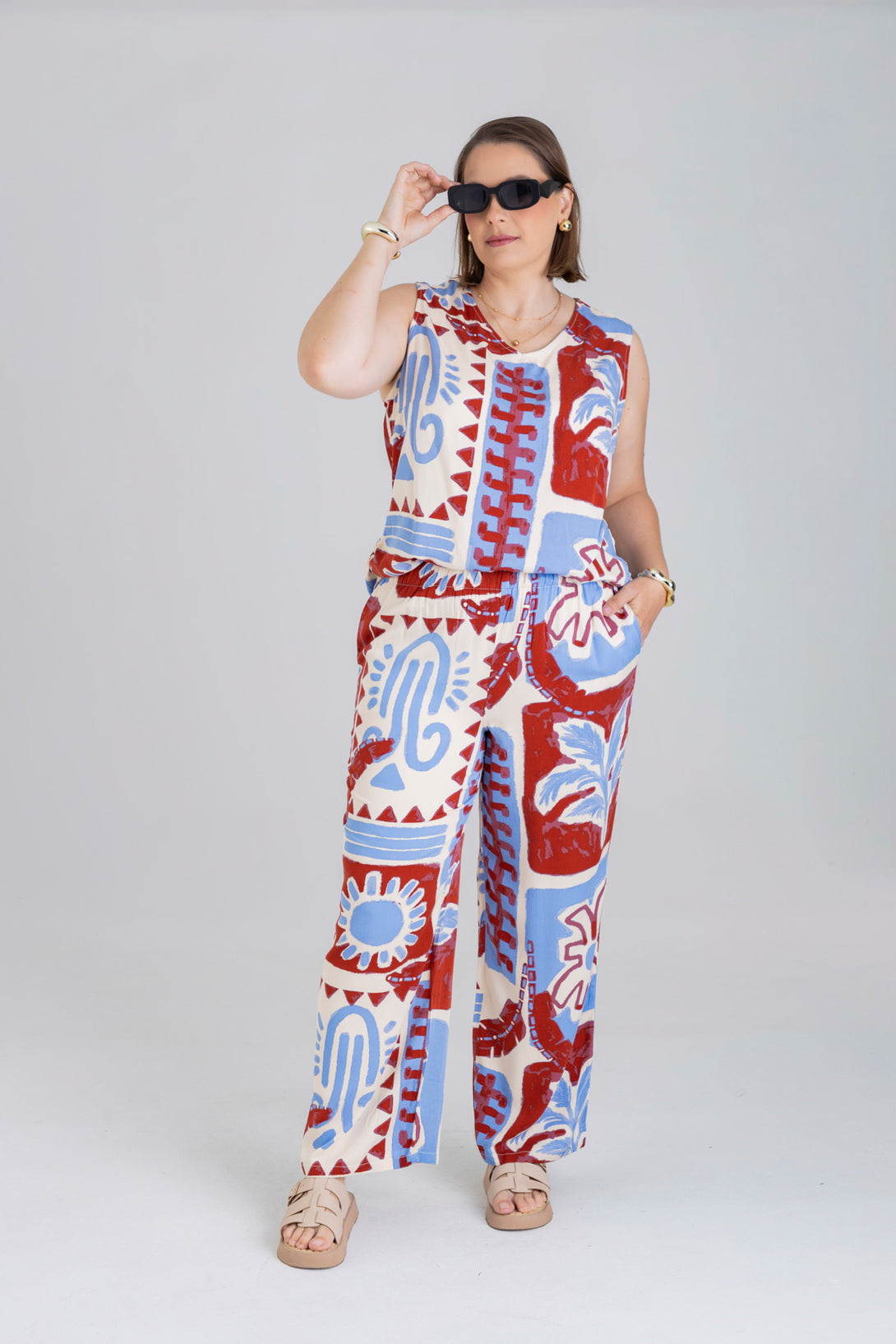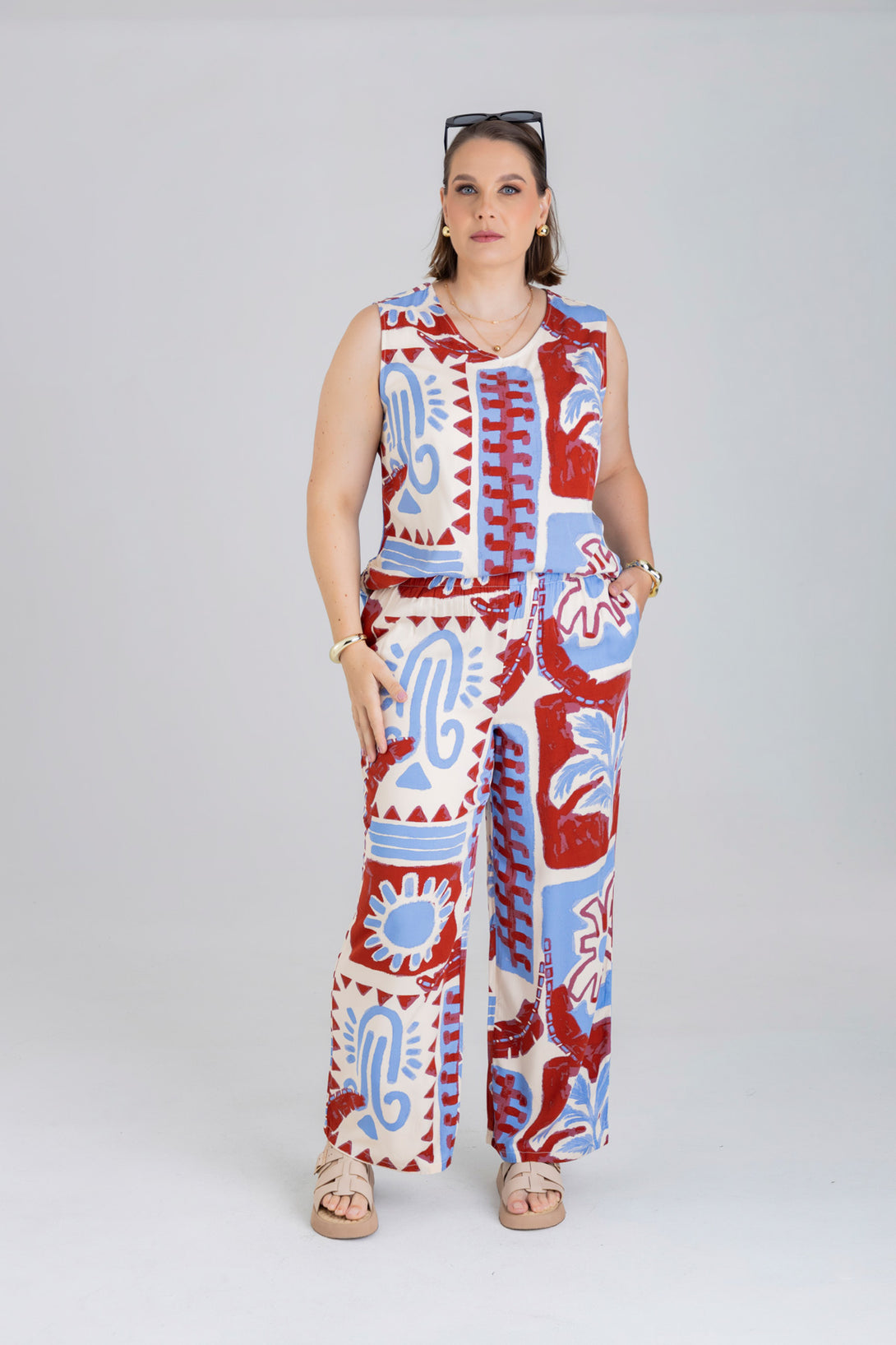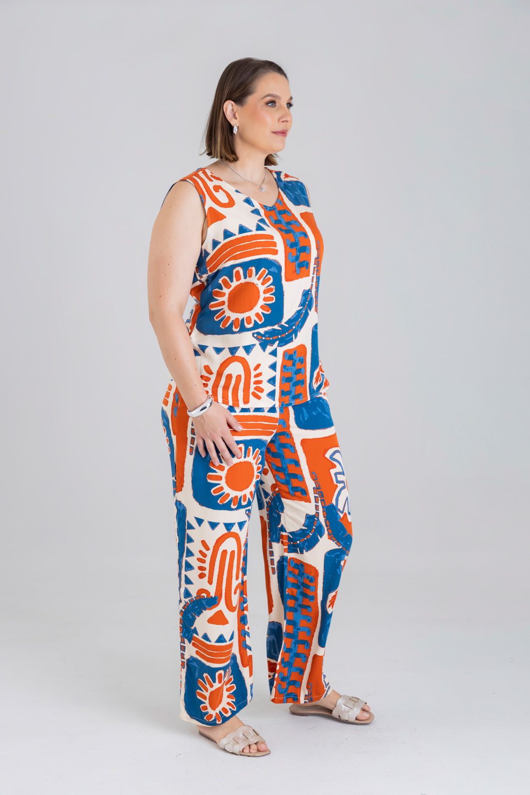 Blusa sisa con escote en V. Elaborada en Rayón estampado.