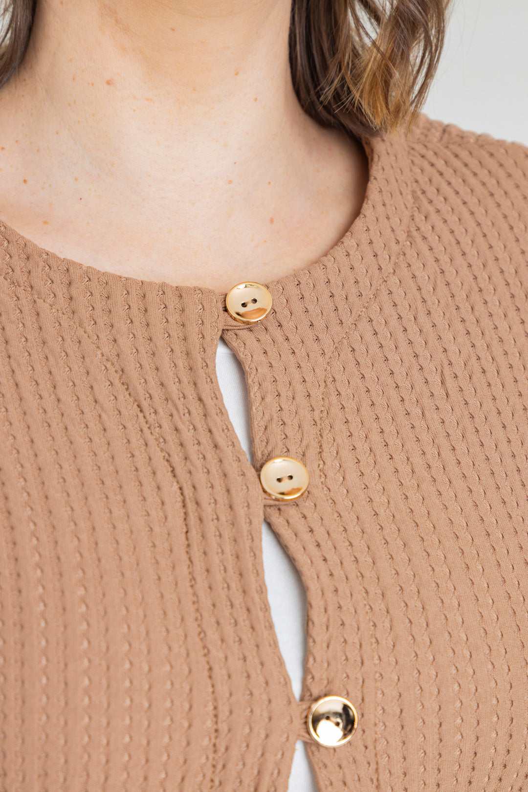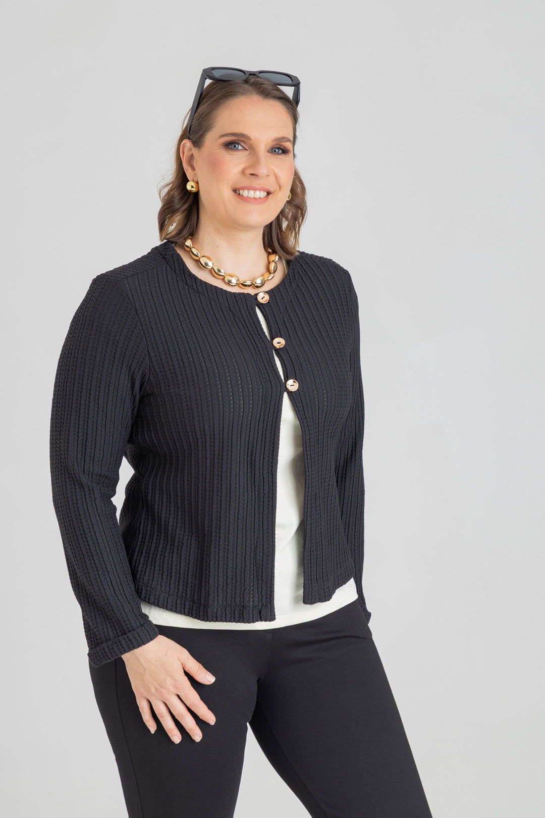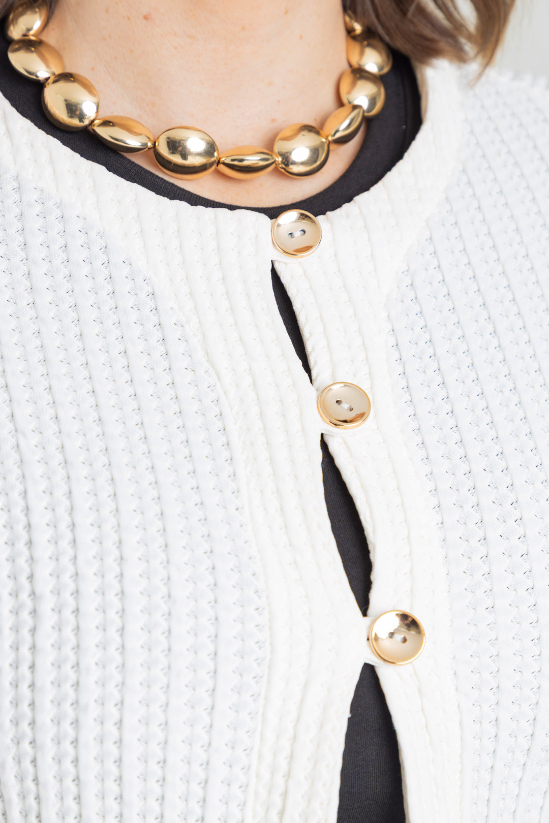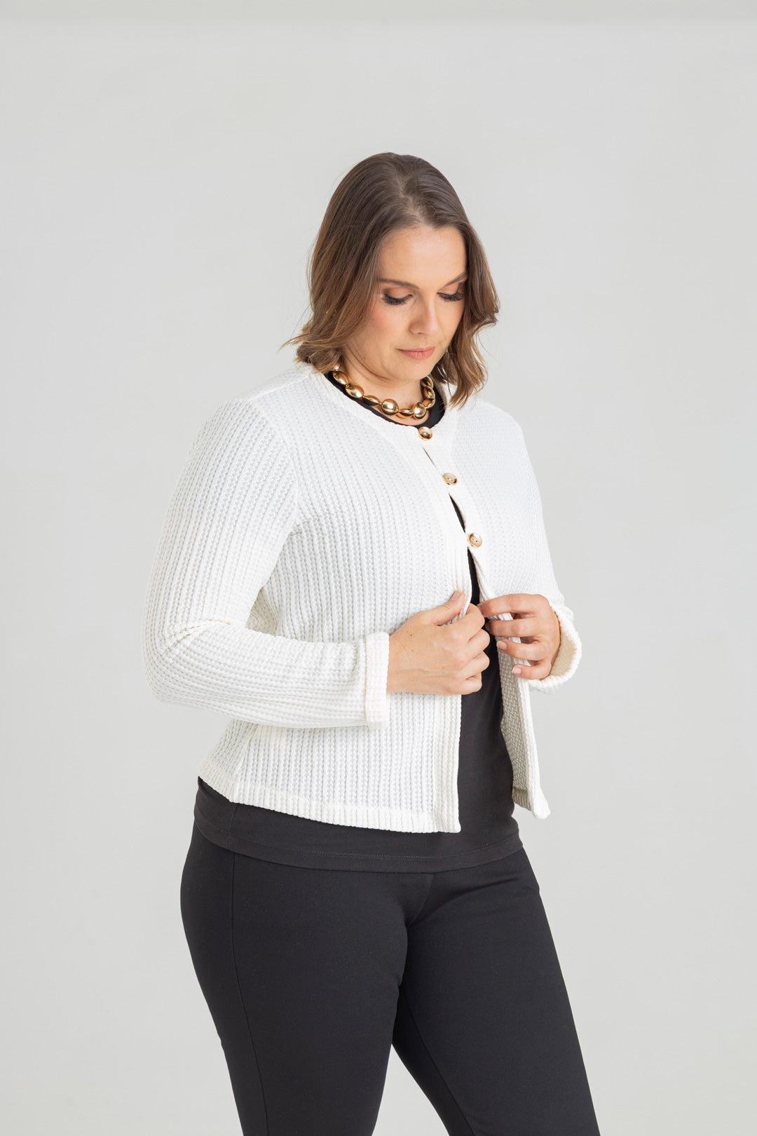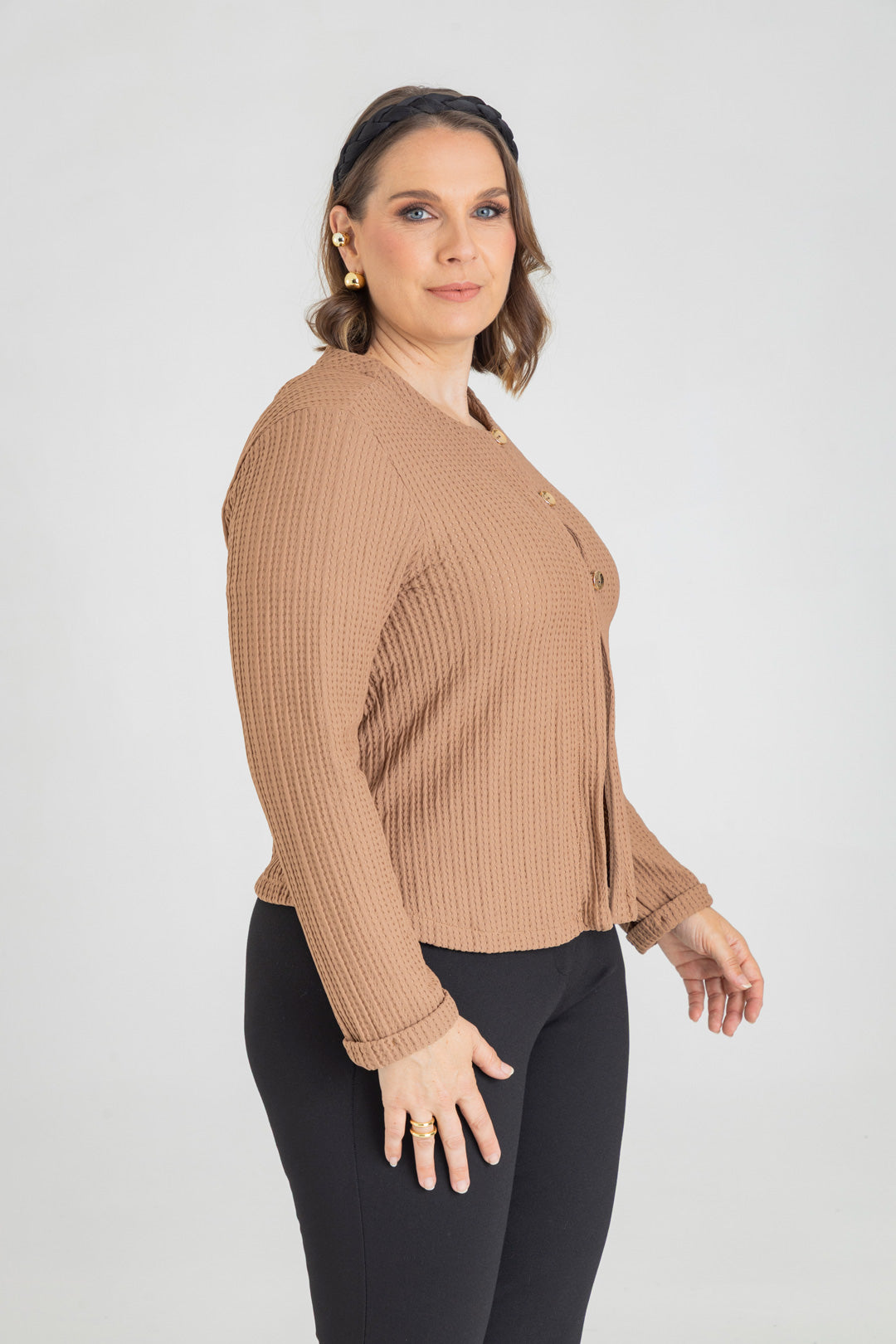 Chaqueta con dobladillo en puño y detalle de tres botones. Elaborada en Punto con textura.