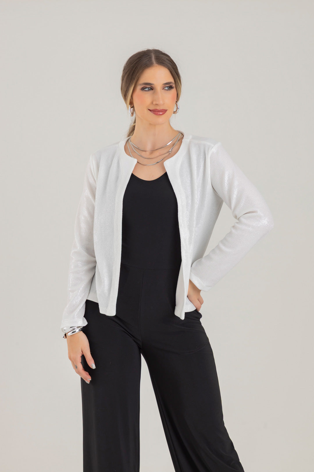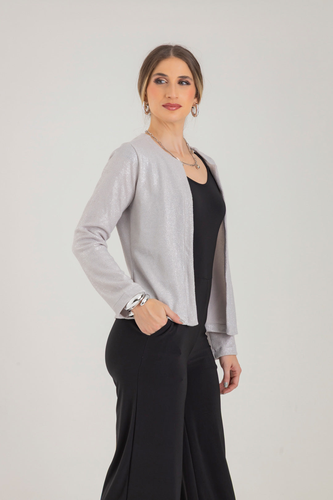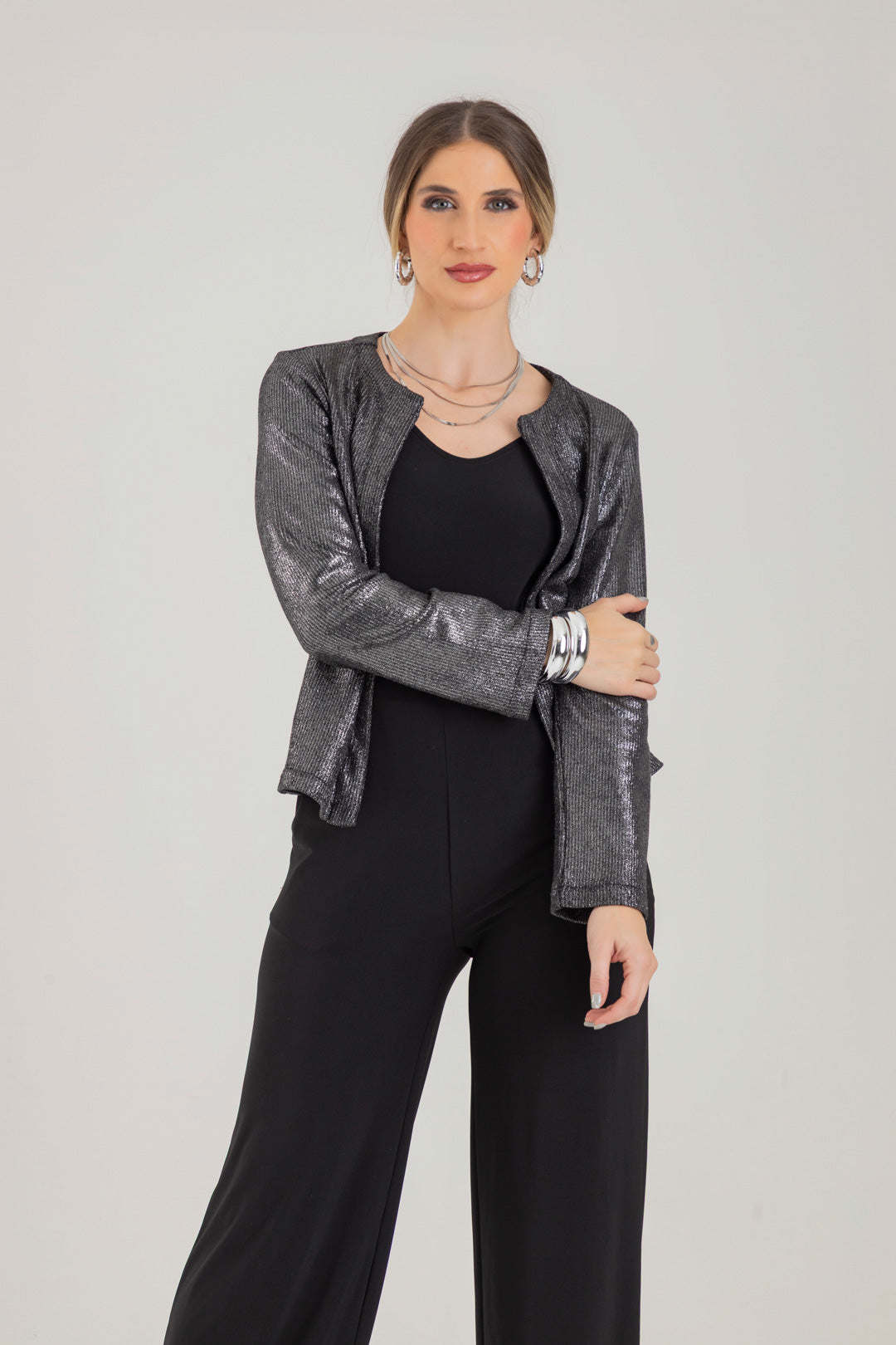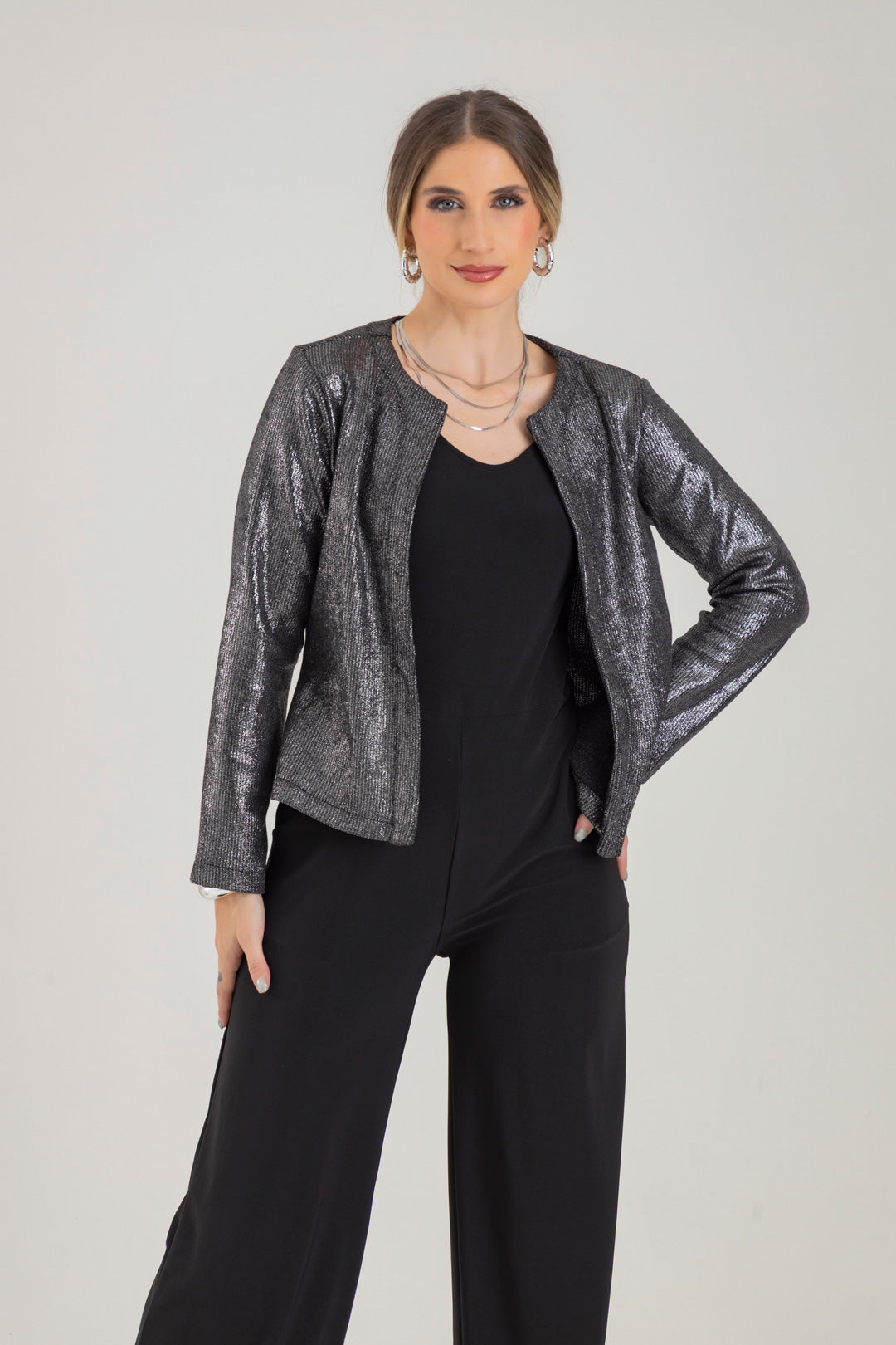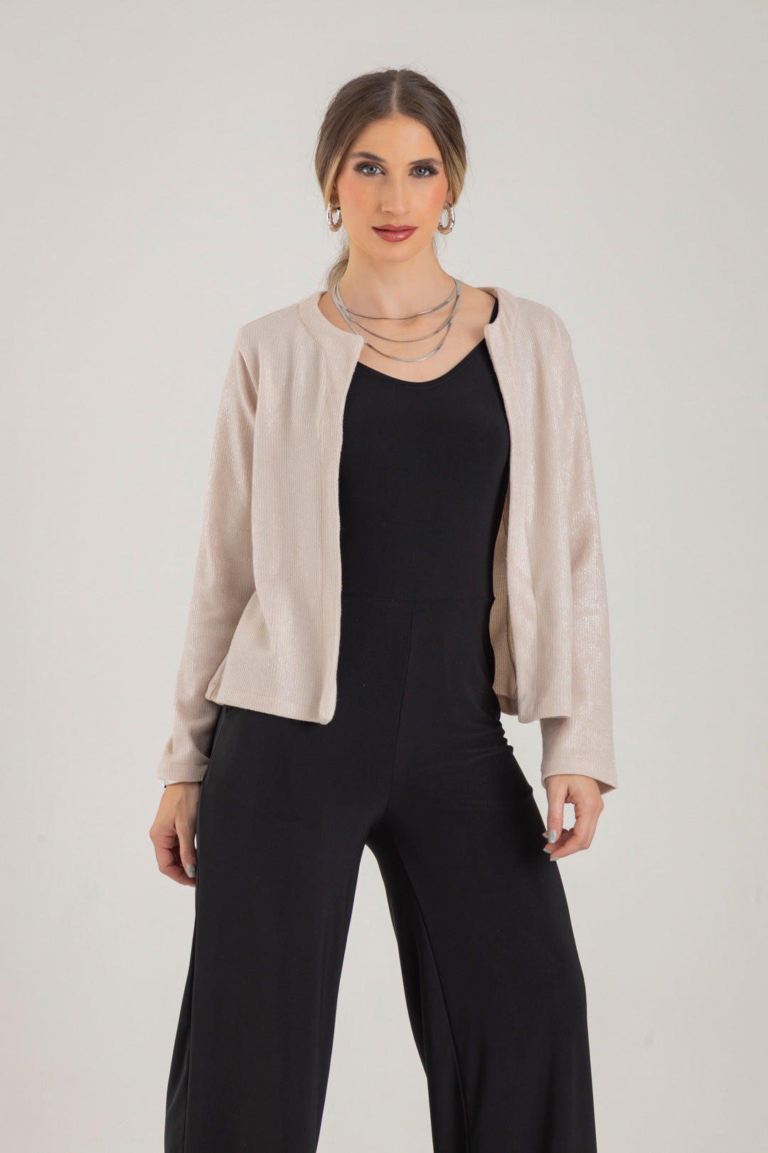 Chaqueta escote redondo y manga larga. Elaborada en Tweed con lurex.