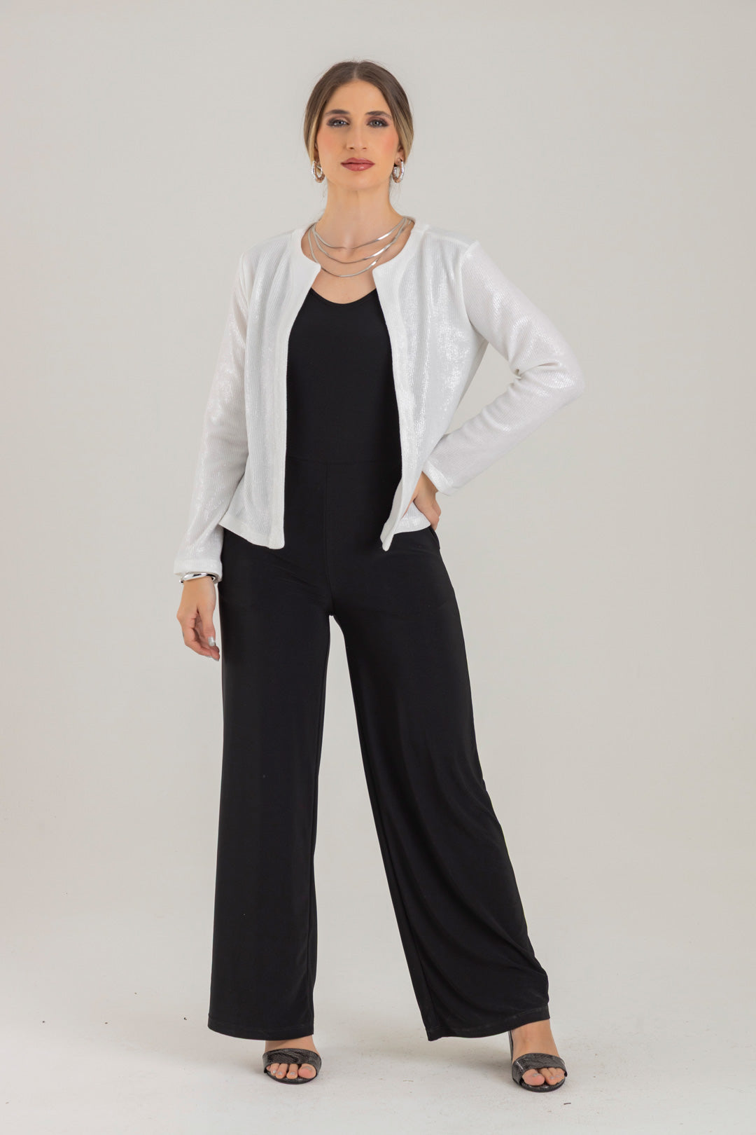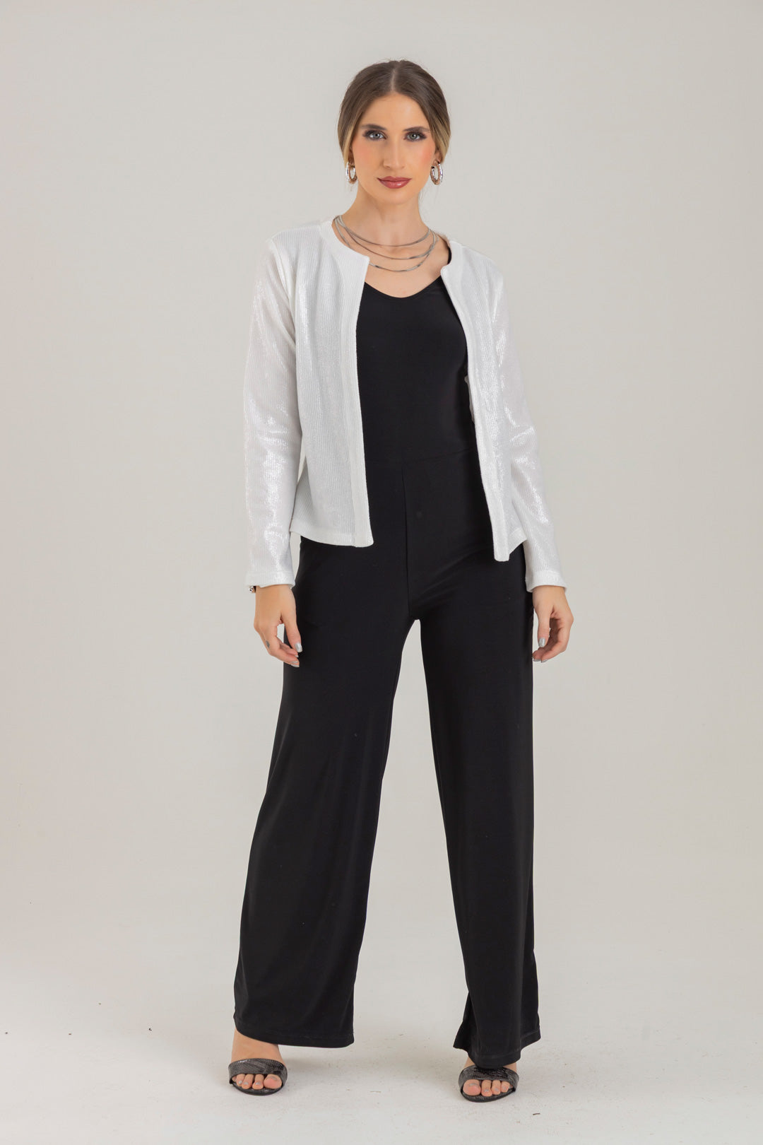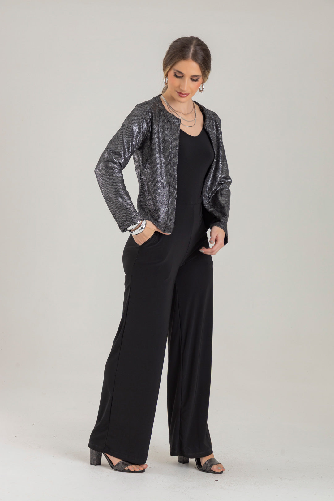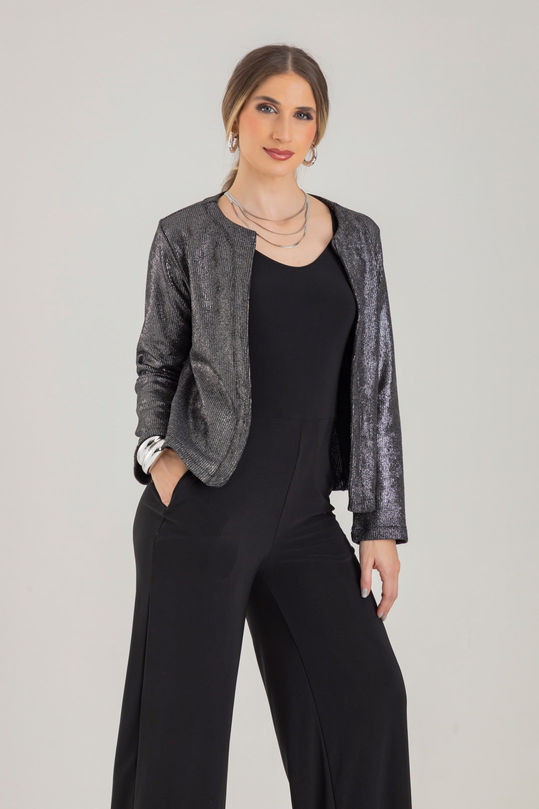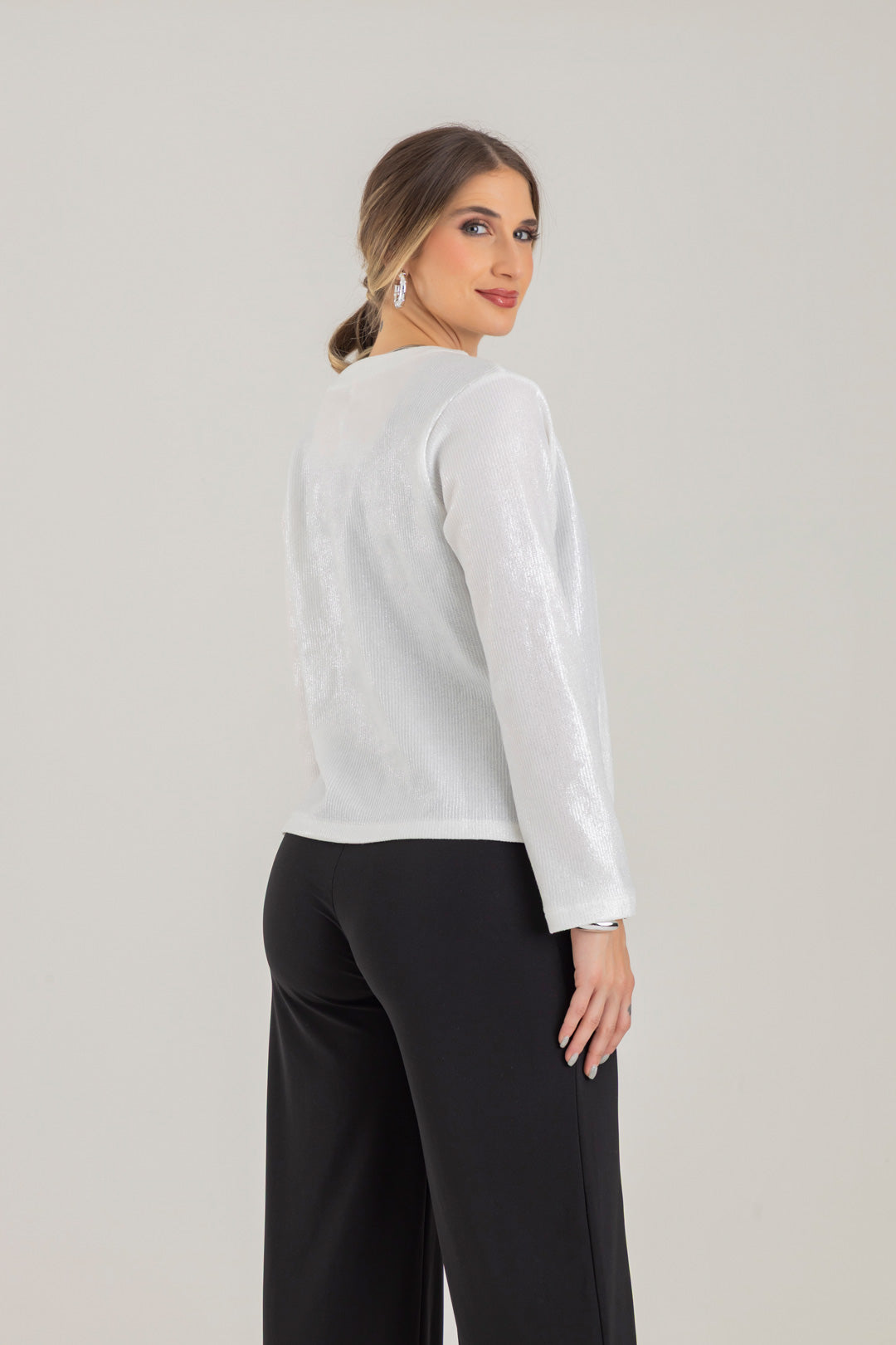 Chaqueta escote redondo y manga larga. Elaborada en Tweed con lurex.