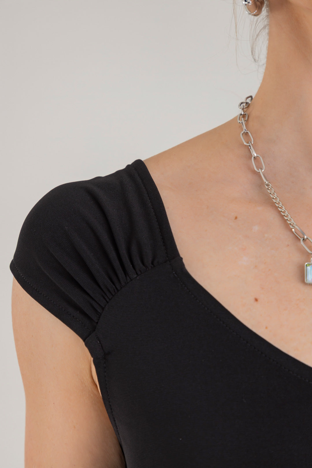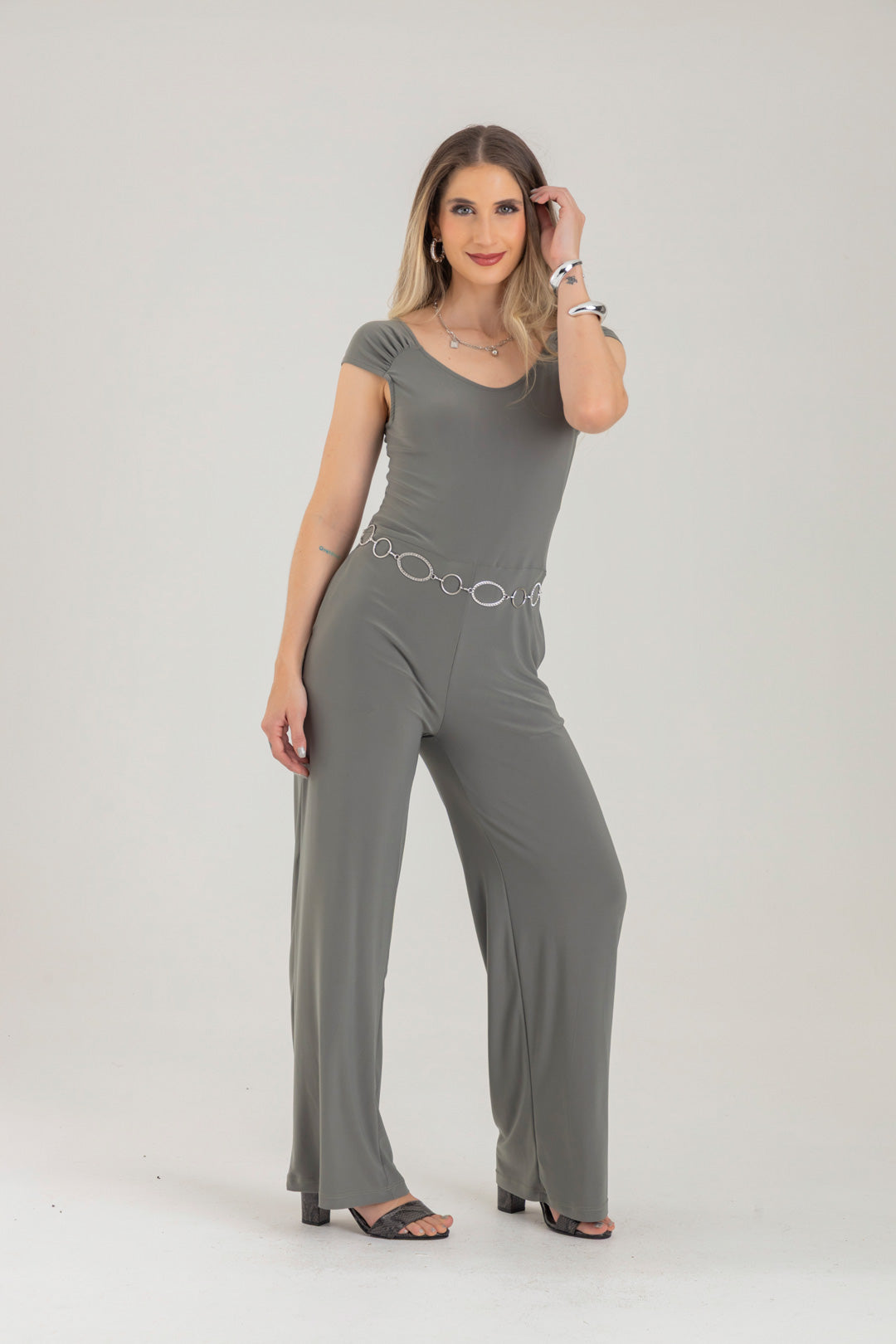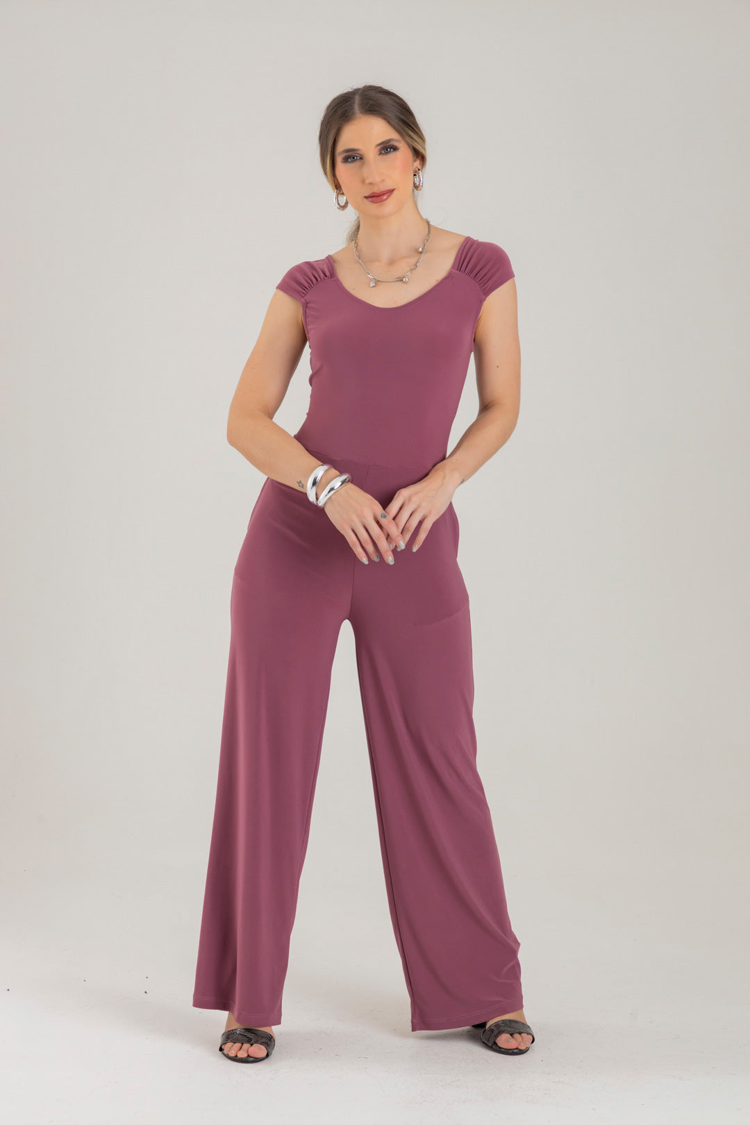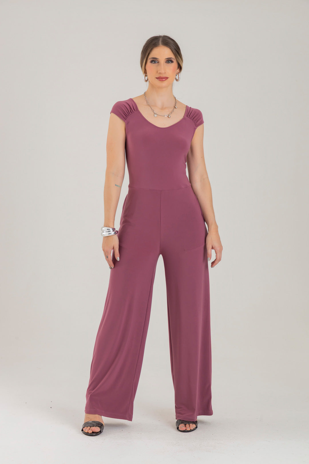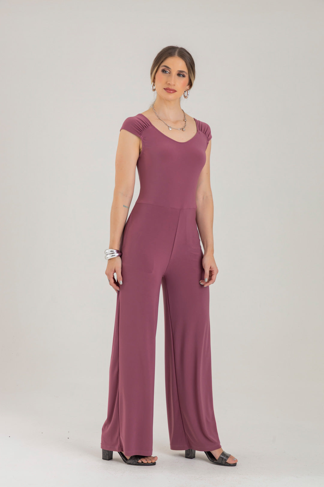 Enterizo escote en U con cargaderas. Elaborado en Acetato fondo entero.