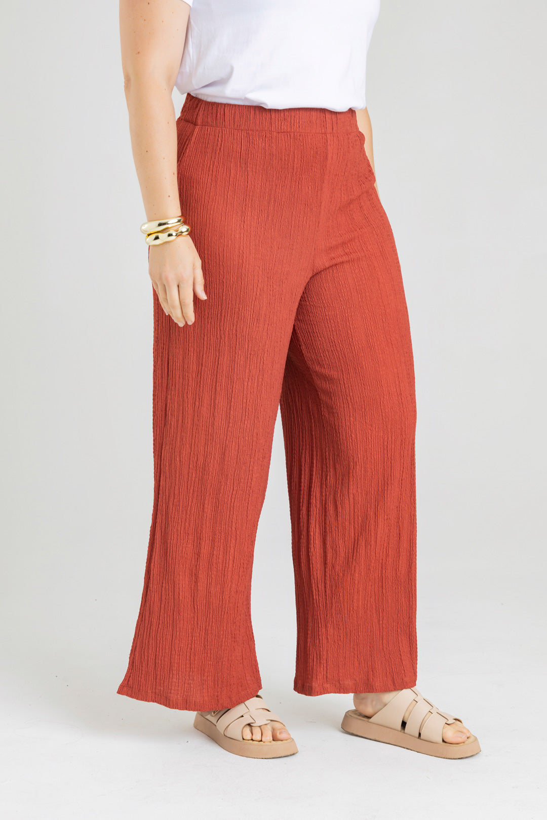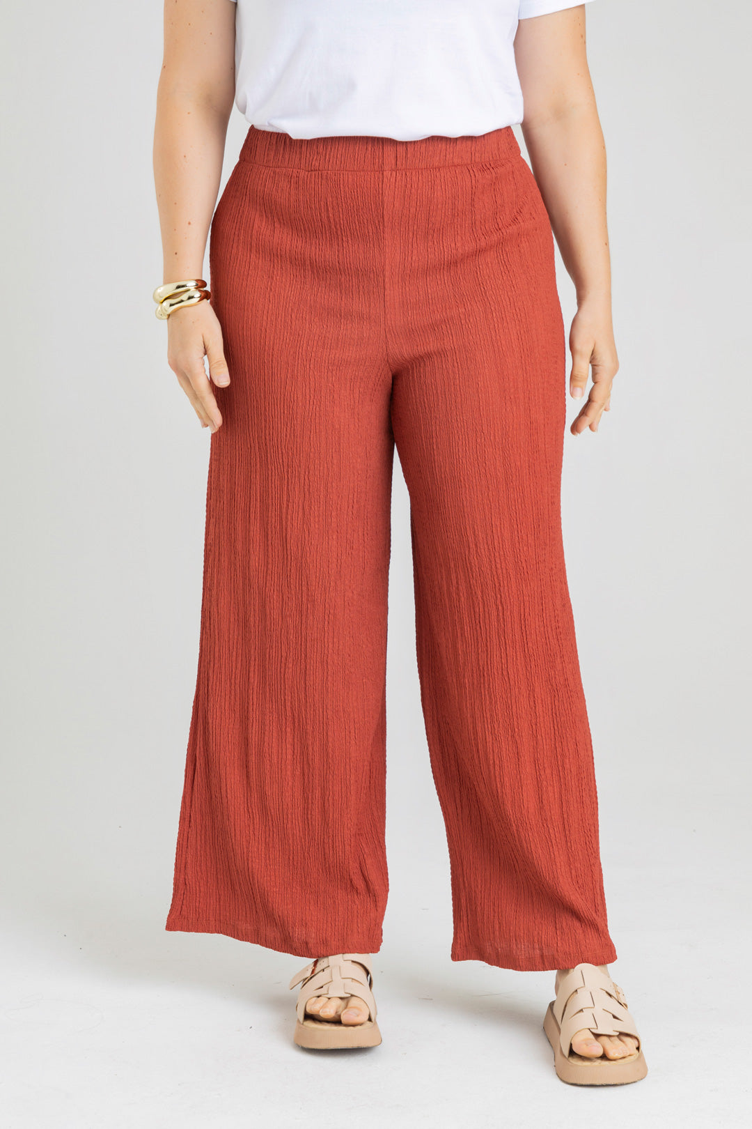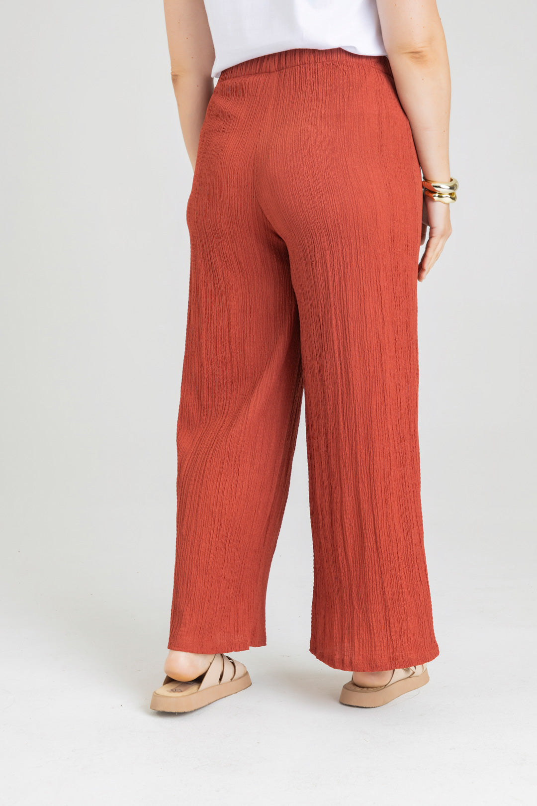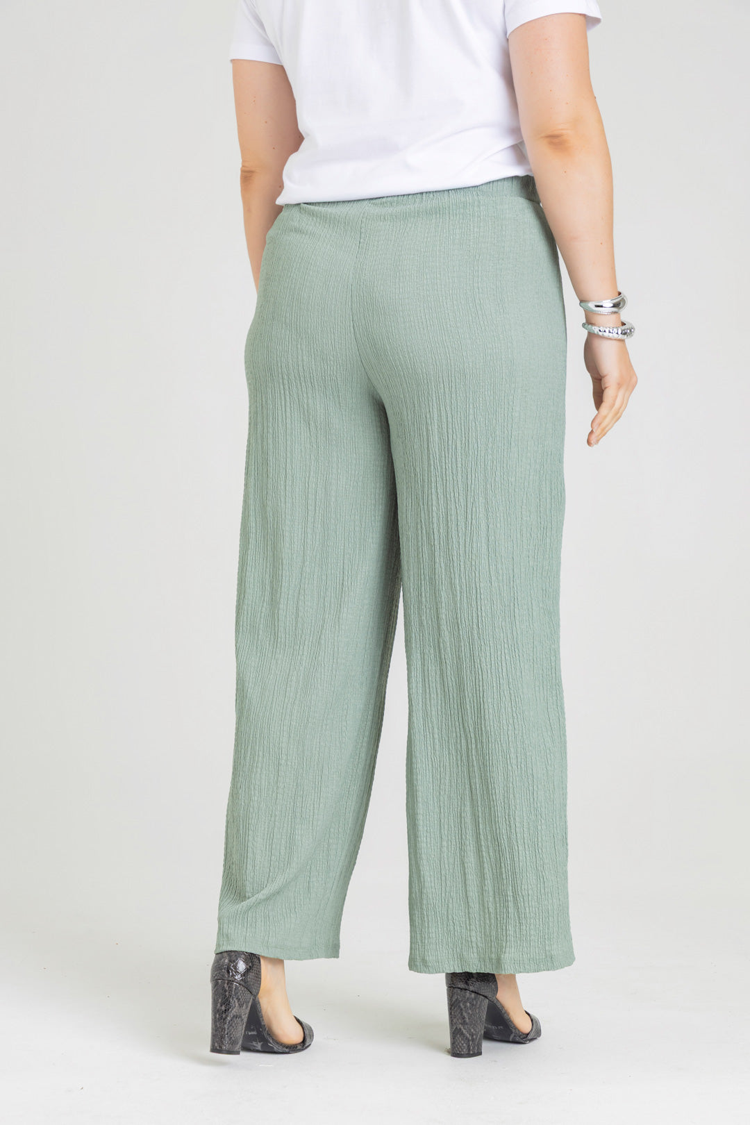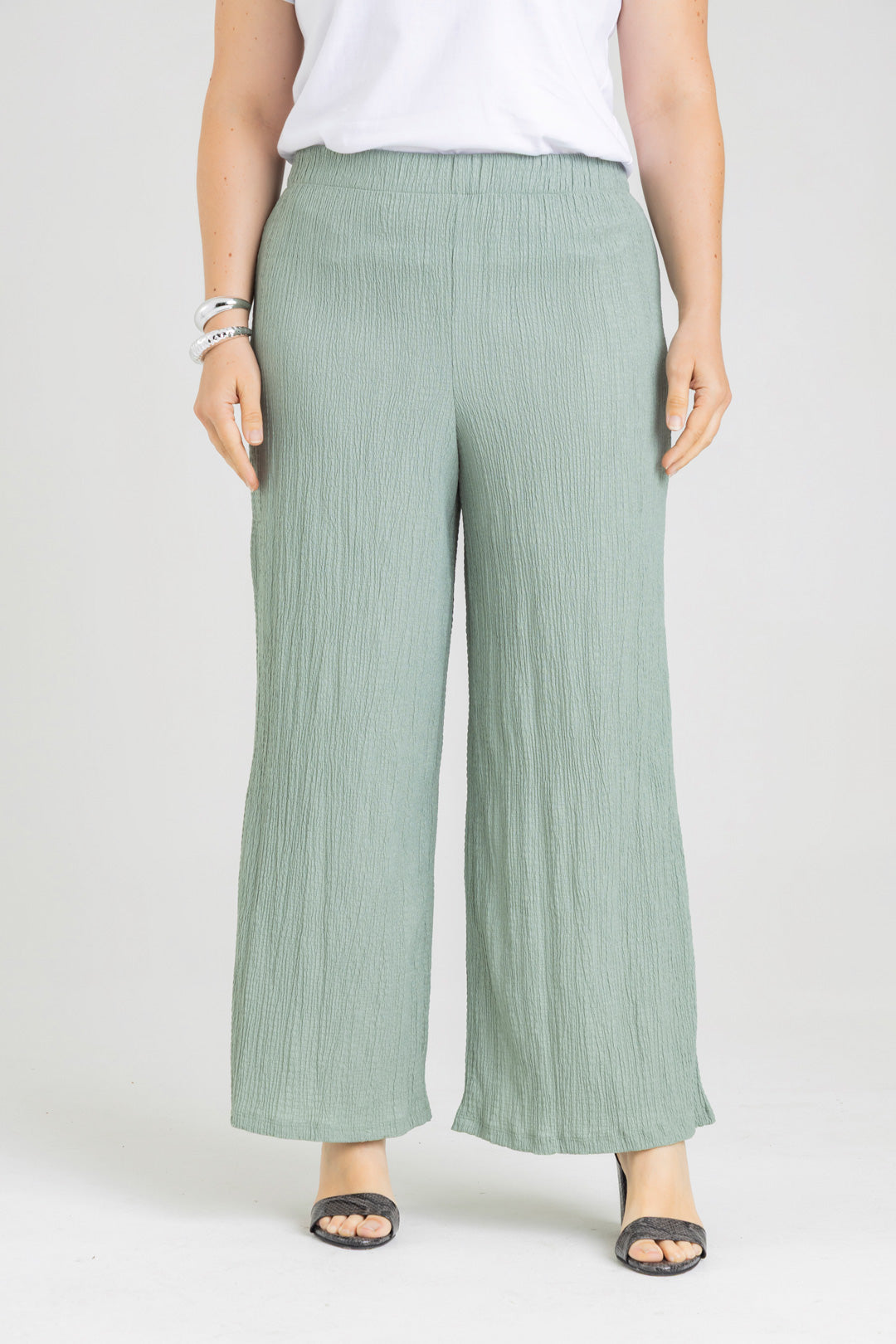 Pantalón fluido con elástico en contorno de pretina y bolsillos en costados. Elaborado en Punto con textura.