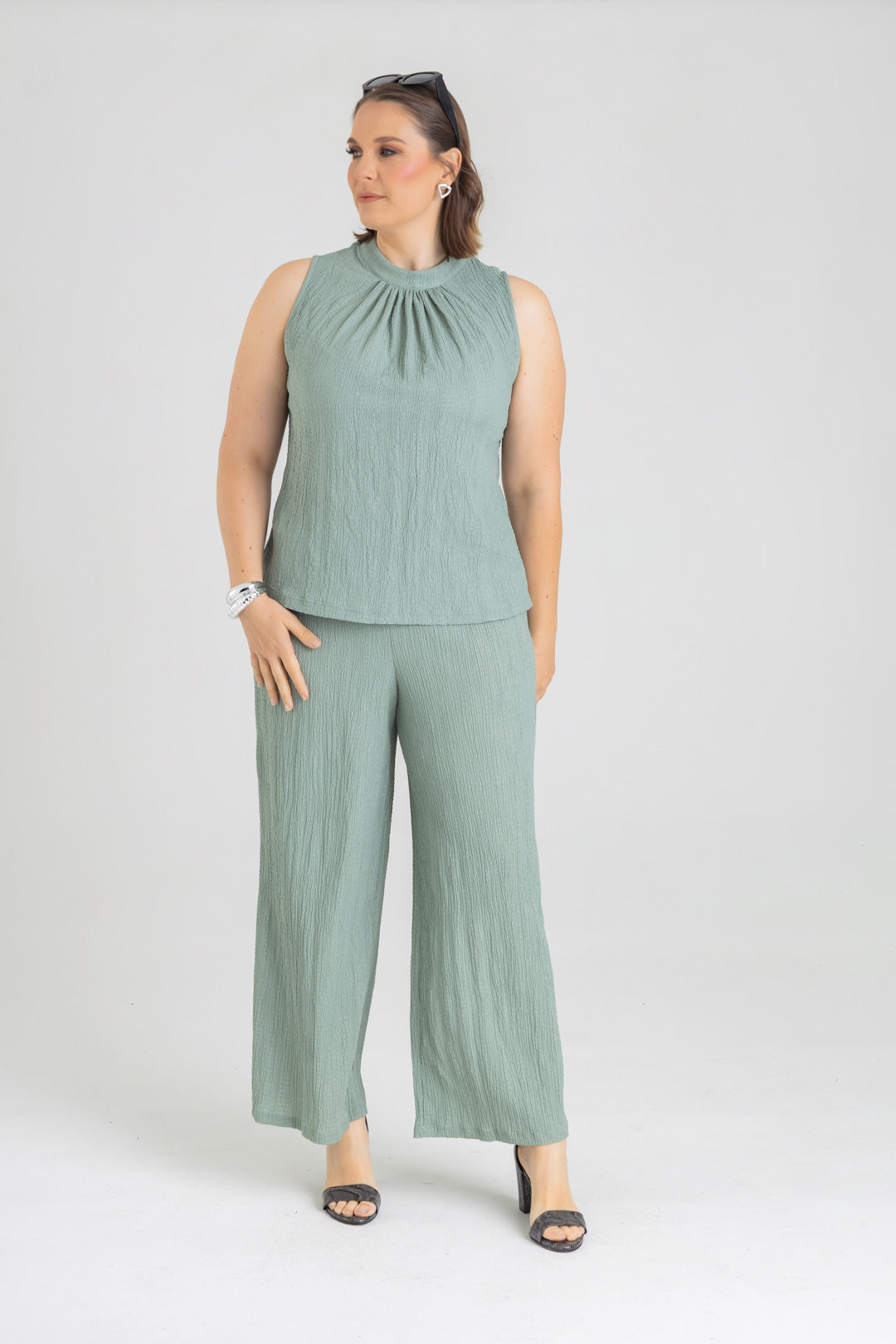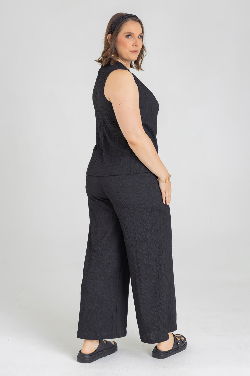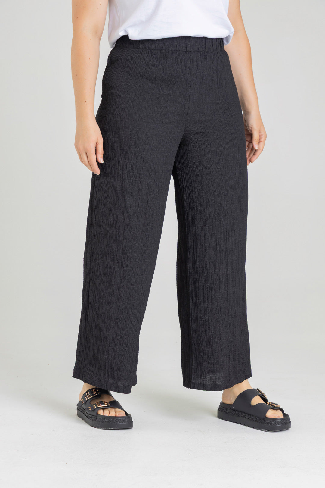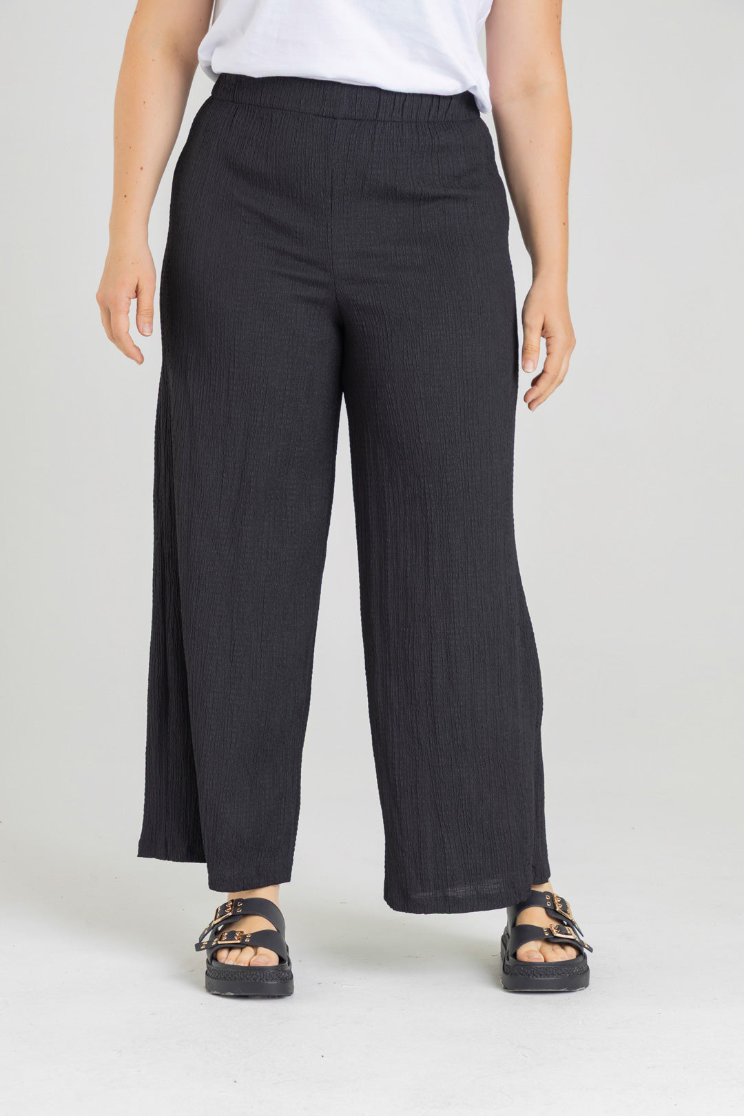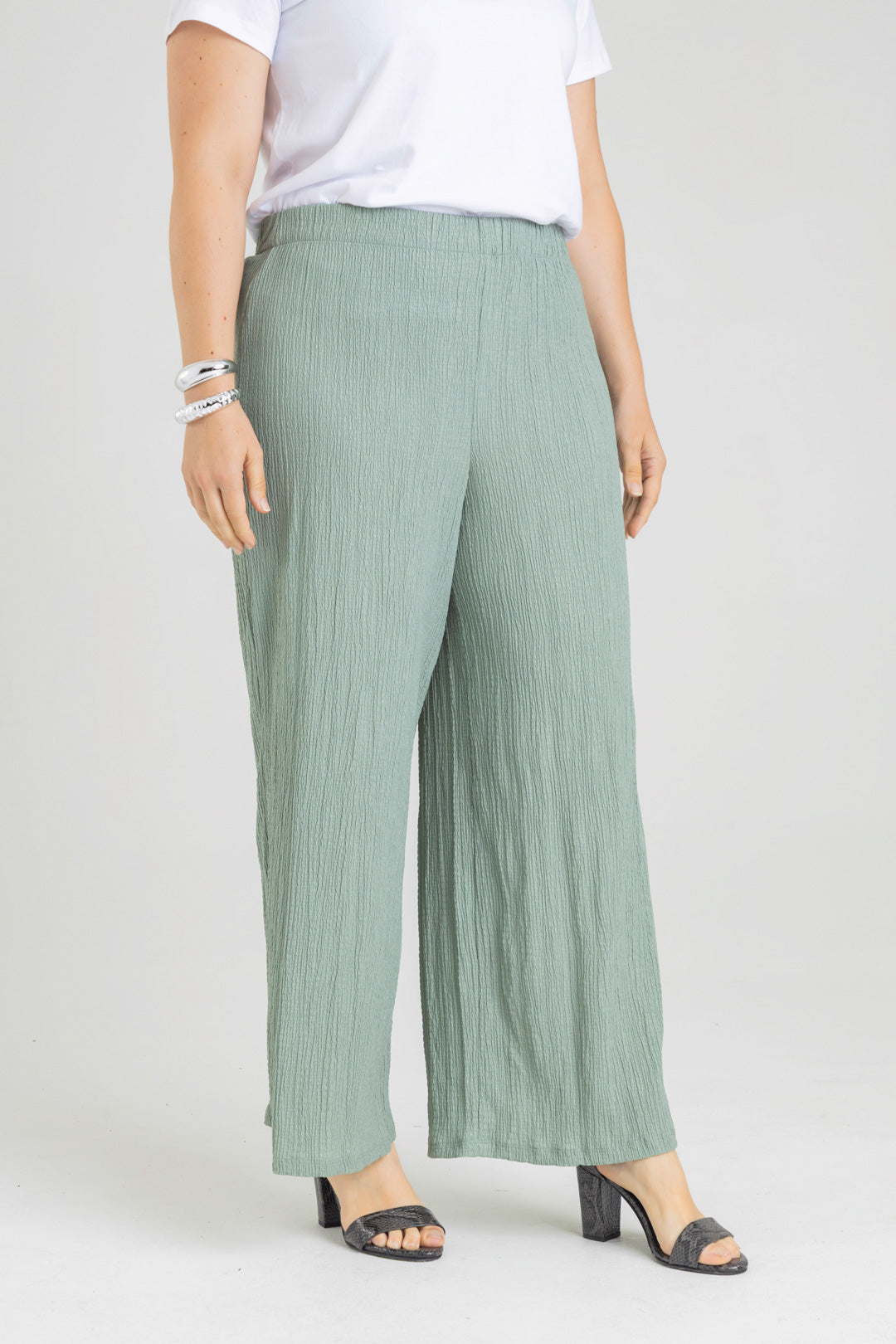 Pantalón fluido con elástico en contorno de pretina y bolsillos en costados. Elaborado en Punto con textura.