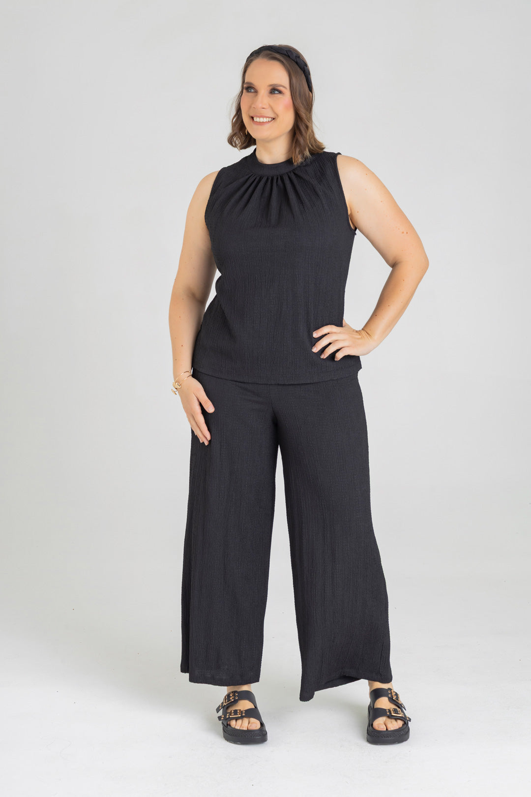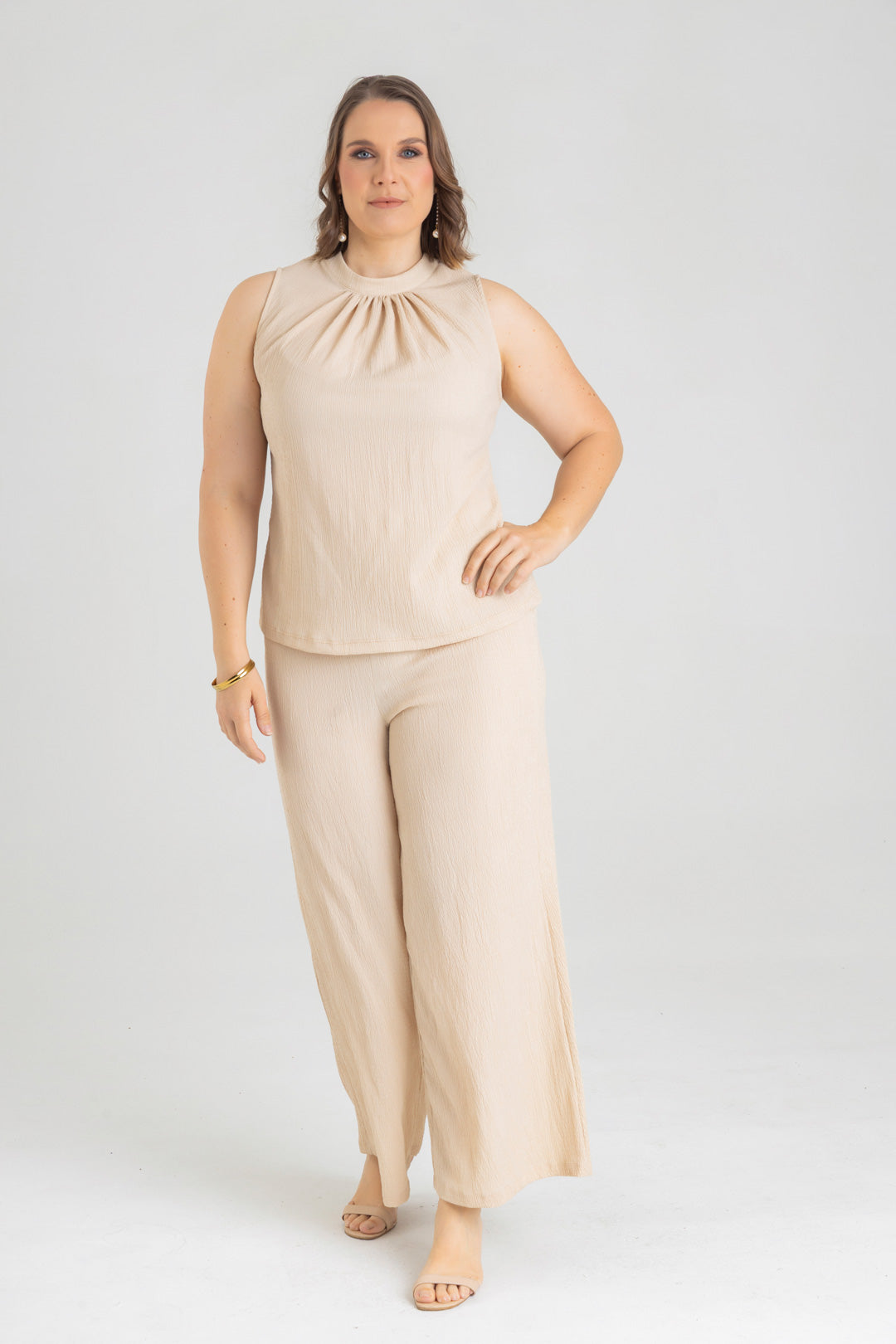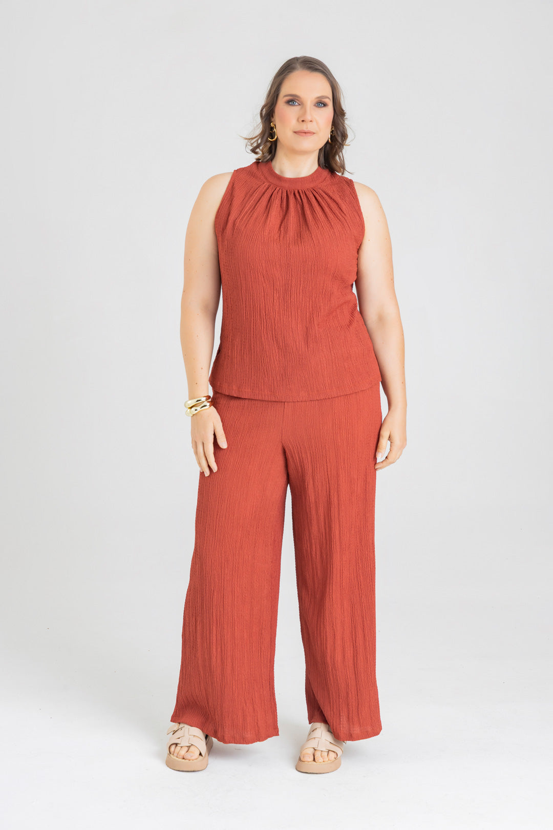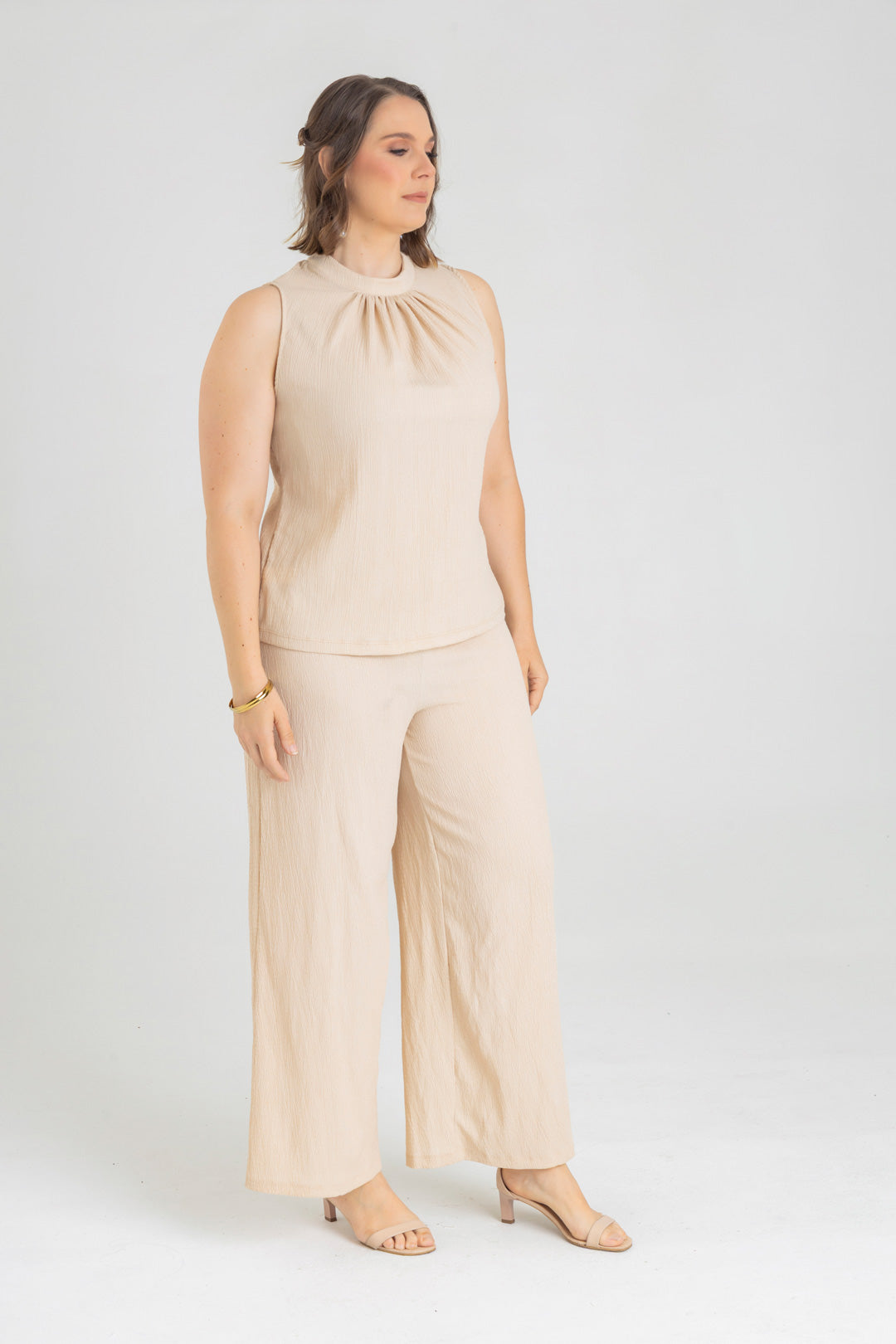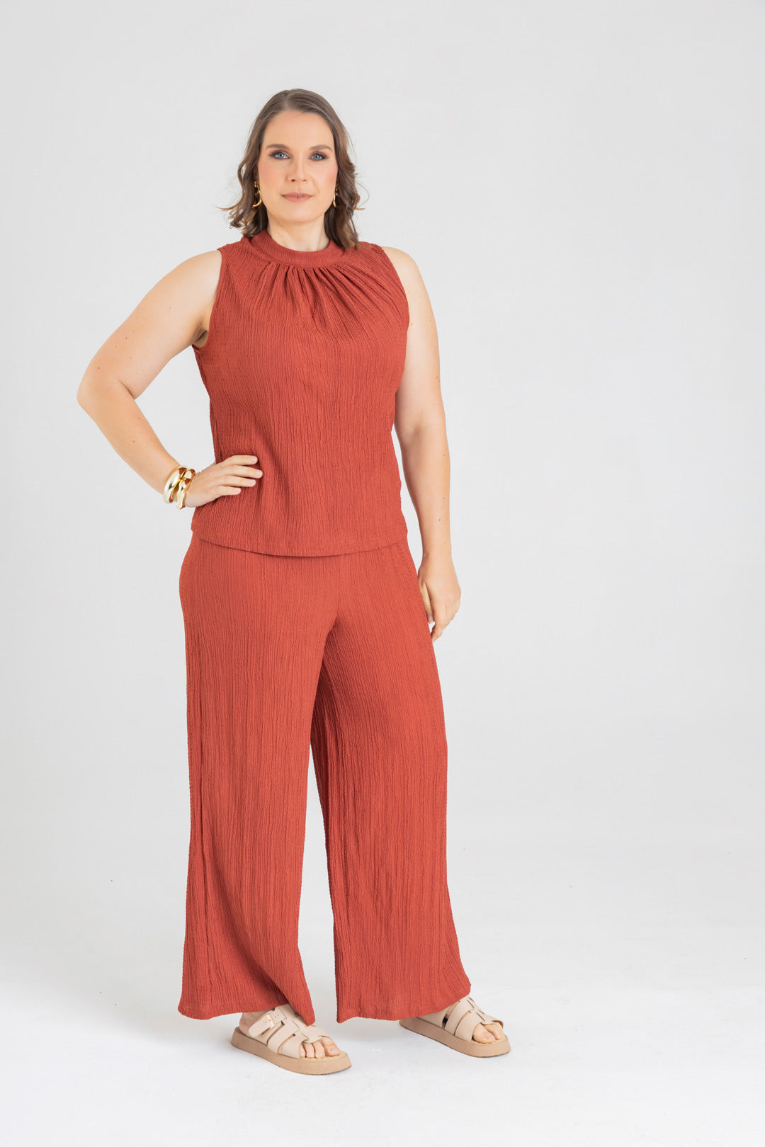 Pantalón fluido con elástico en contorno de pretina y bolsillos en costados. Elaborado en Punto con textura.