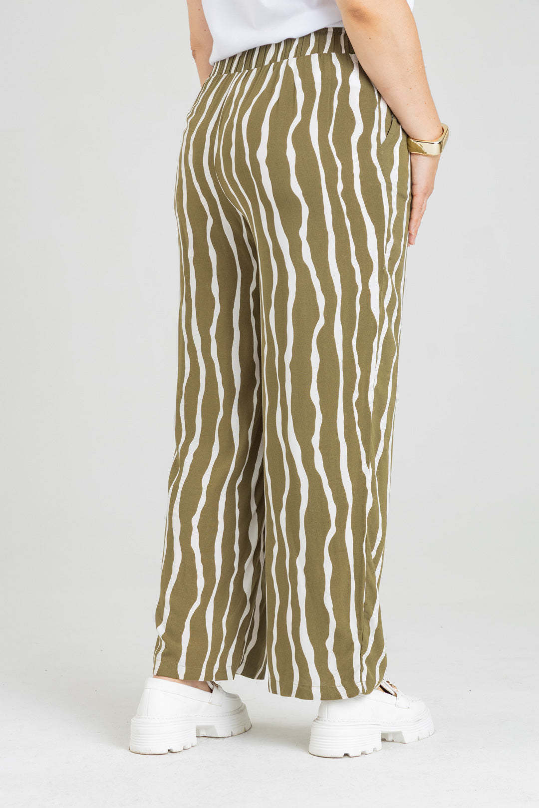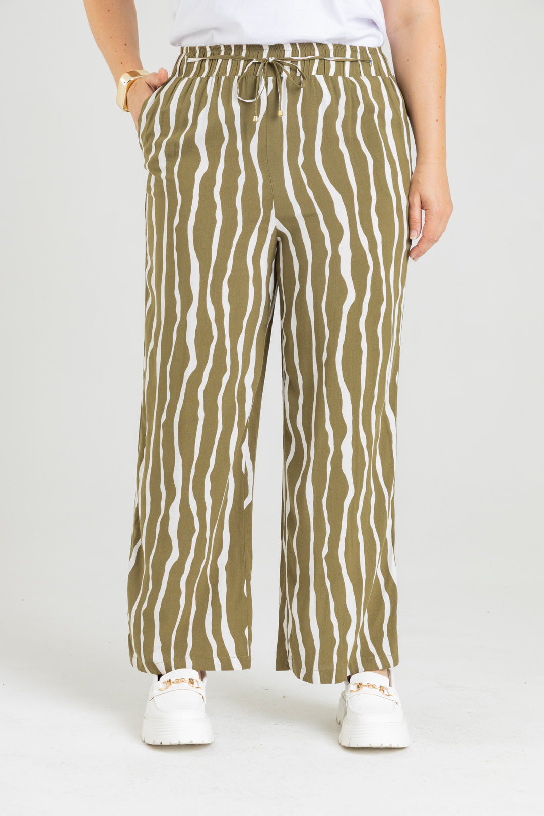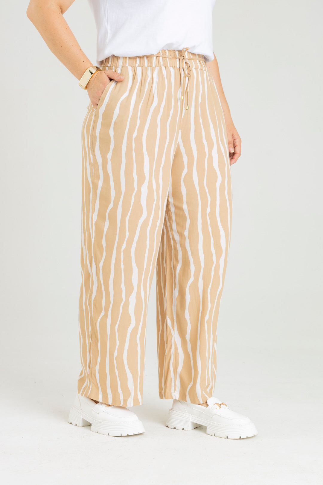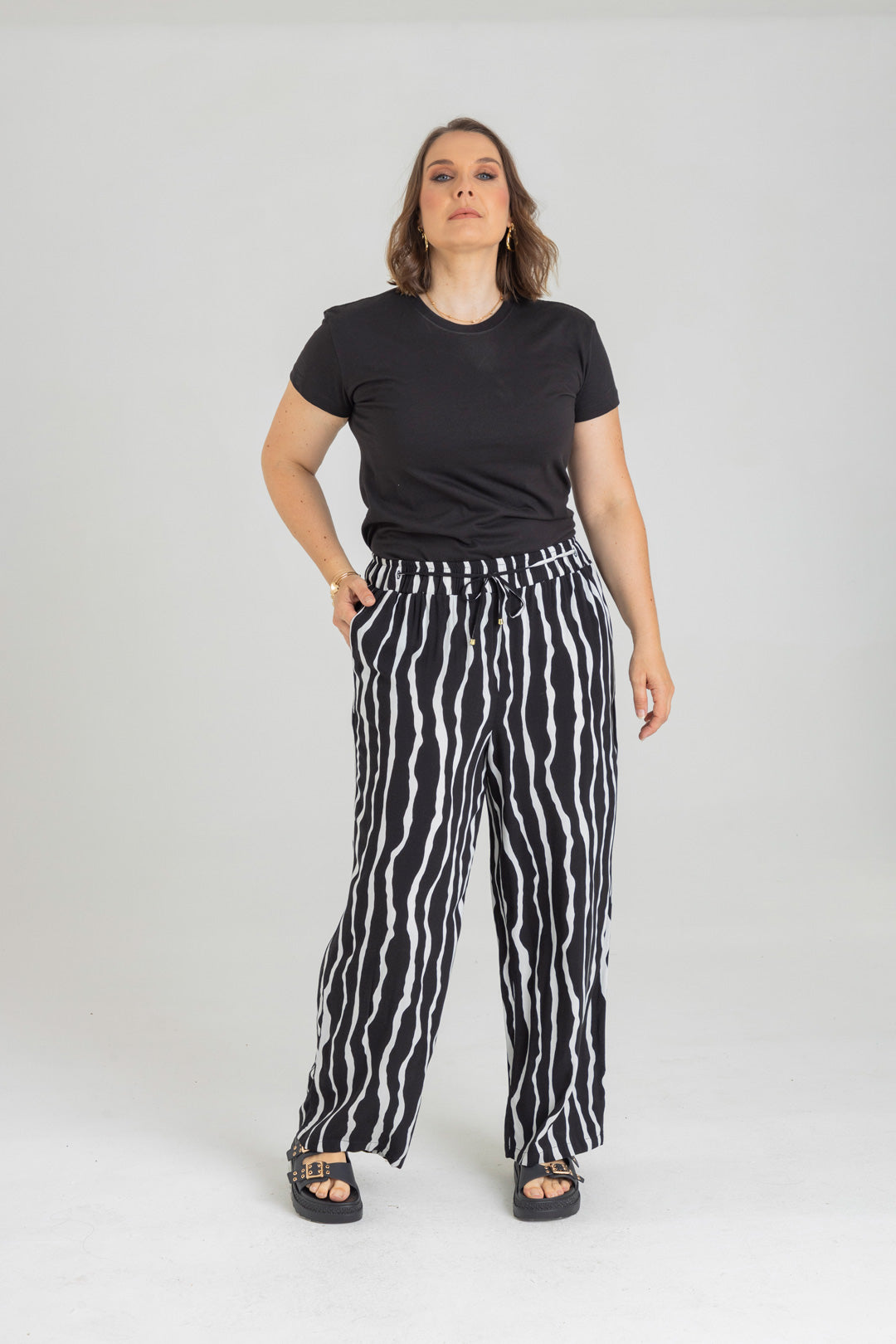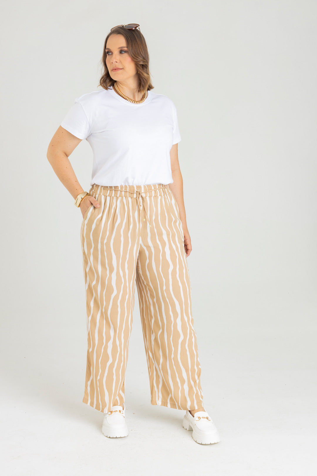 Pantalón silueta fluida con elástico en pretina. Elaborado en Rayón estampado.
