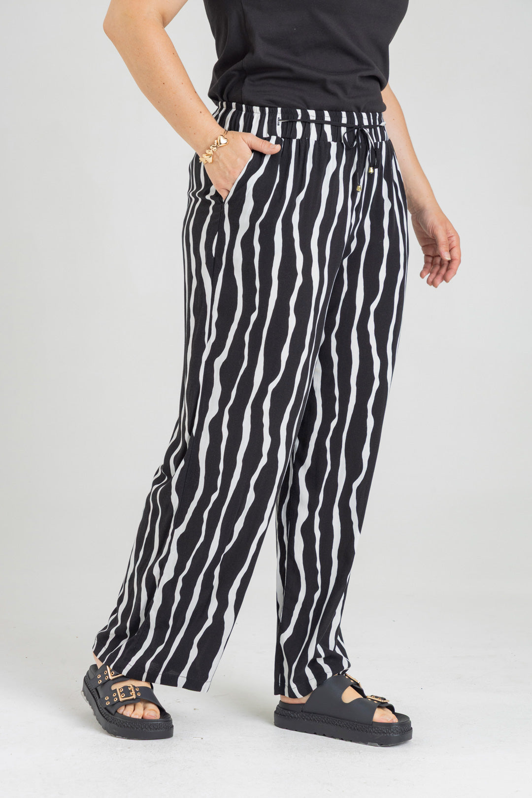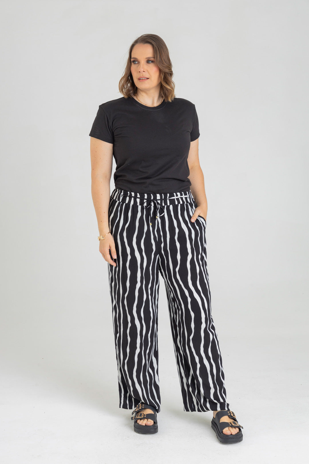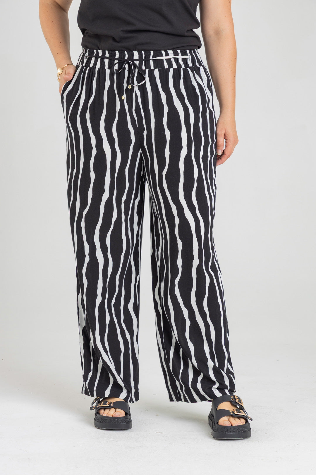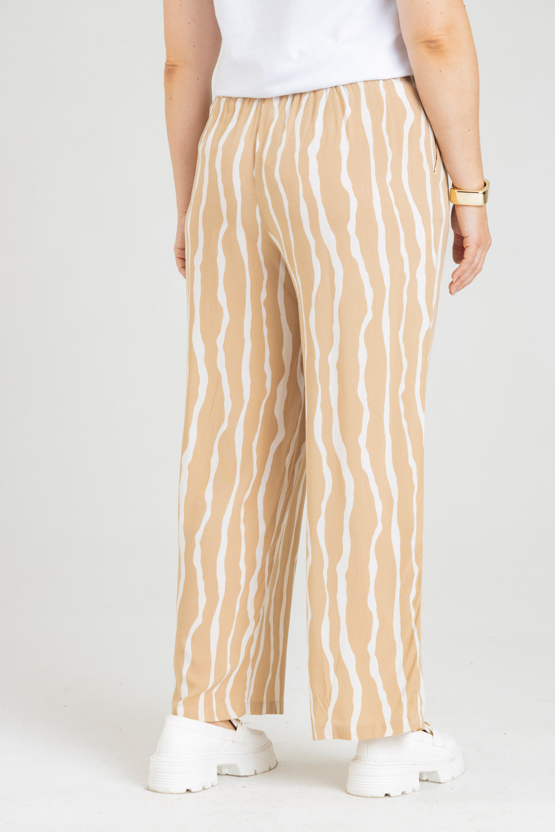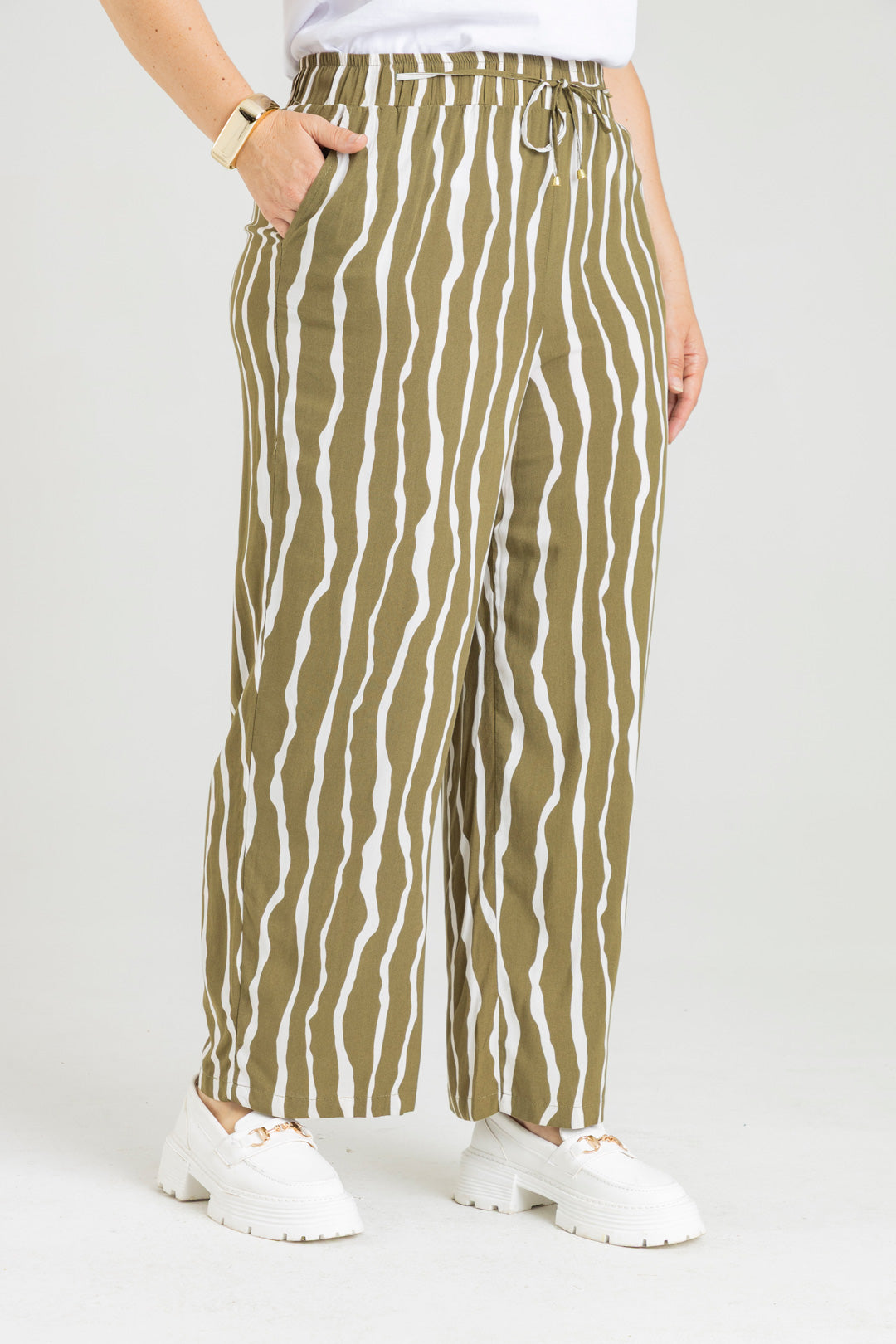 Pantalón silueta fluida con elástico en pretina. Elaborado en Rayón estampado.