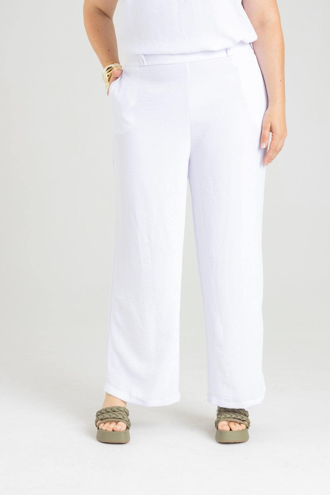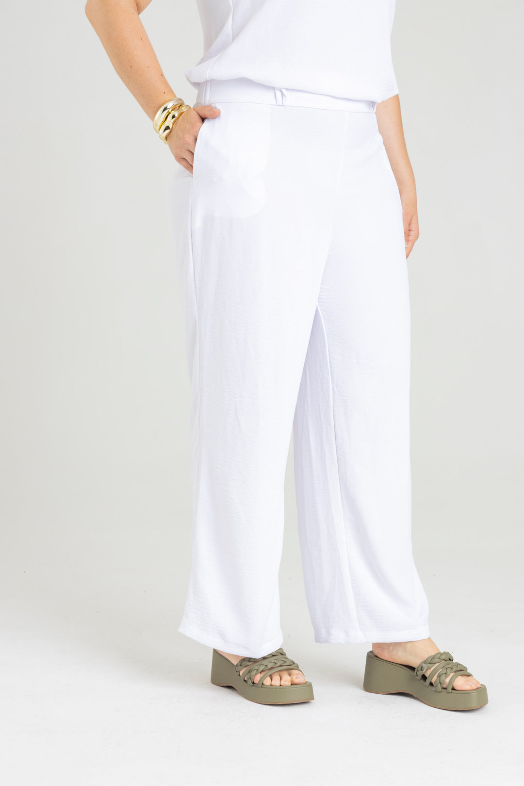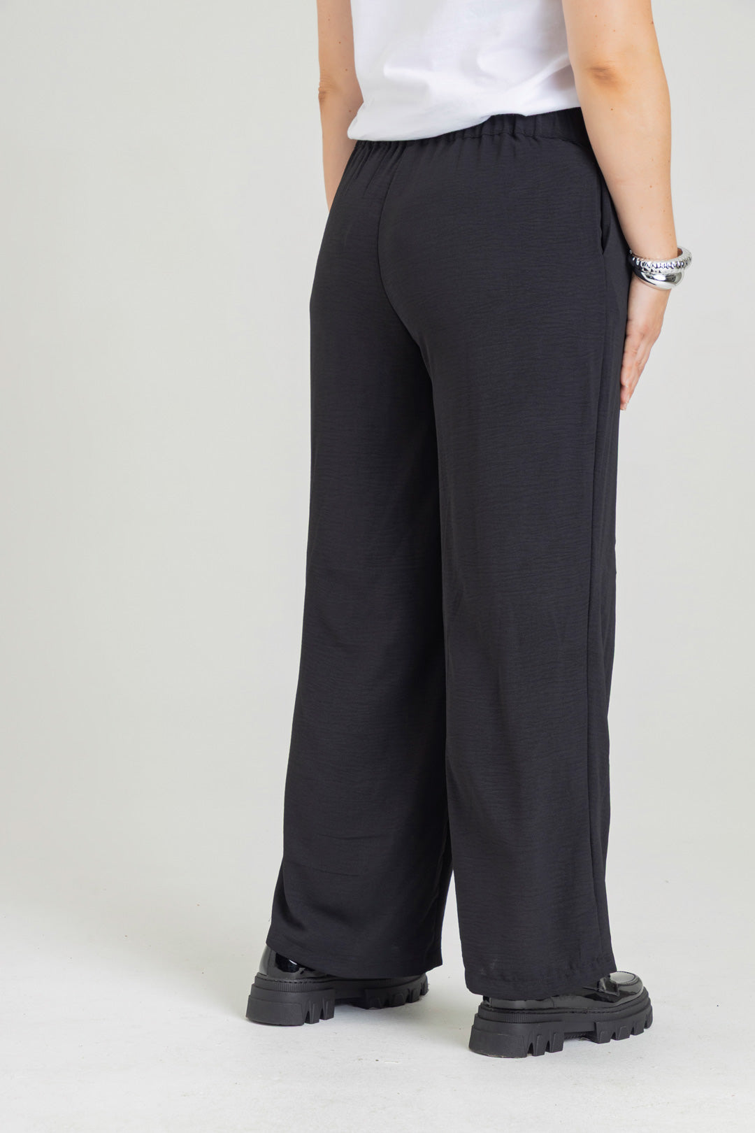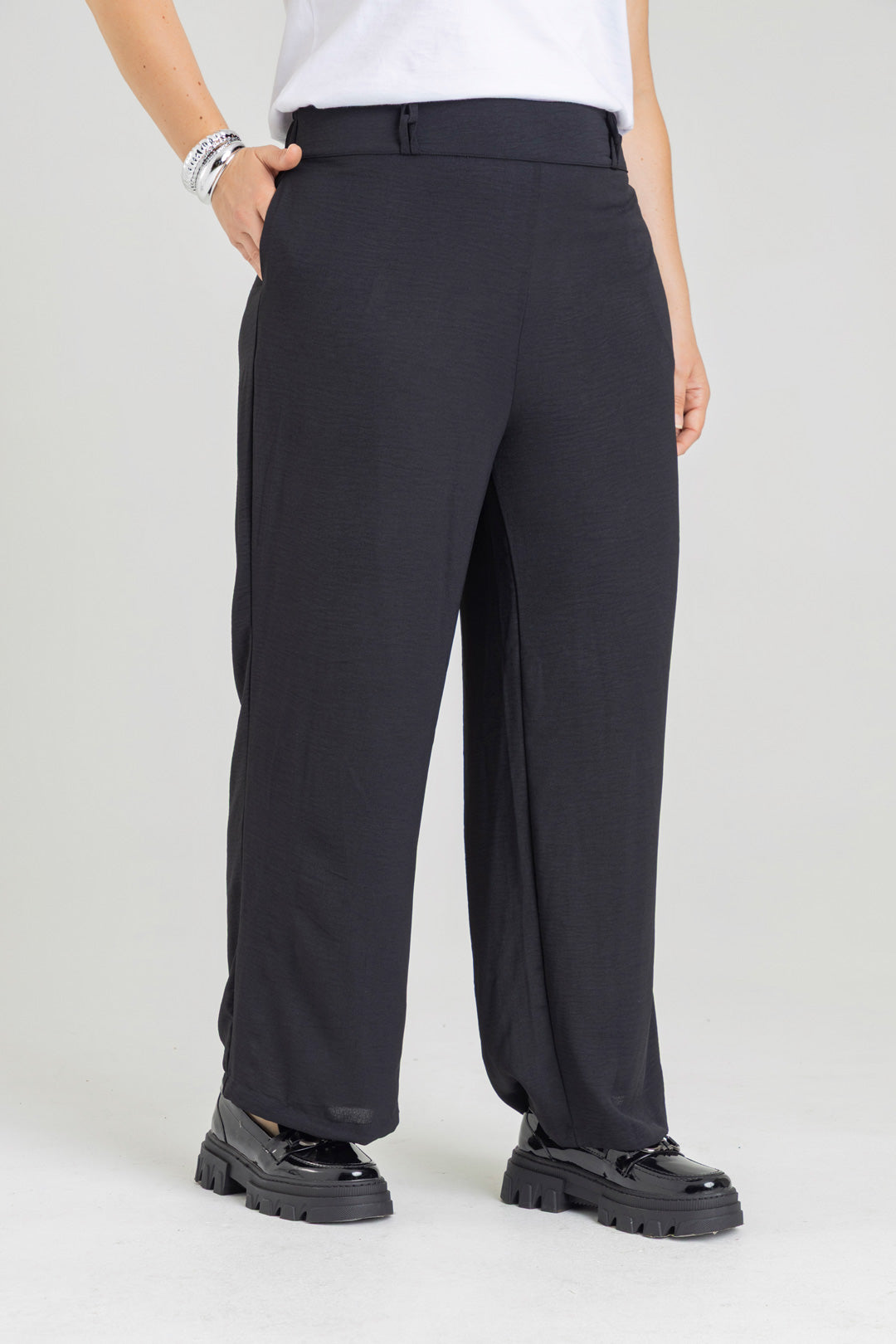 Pantalón silueta fluida con detalle de pasadores en pretina delantera y elástico en posterior. Elaborado en Poliester fondo entero.