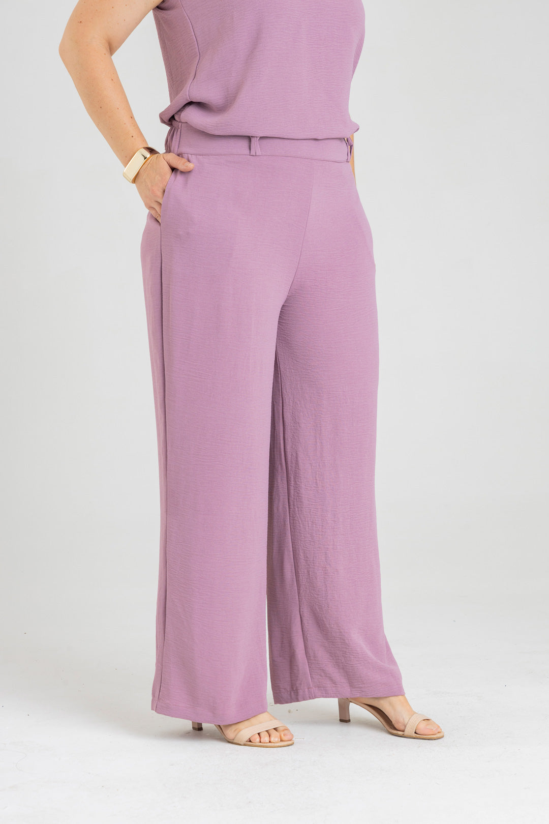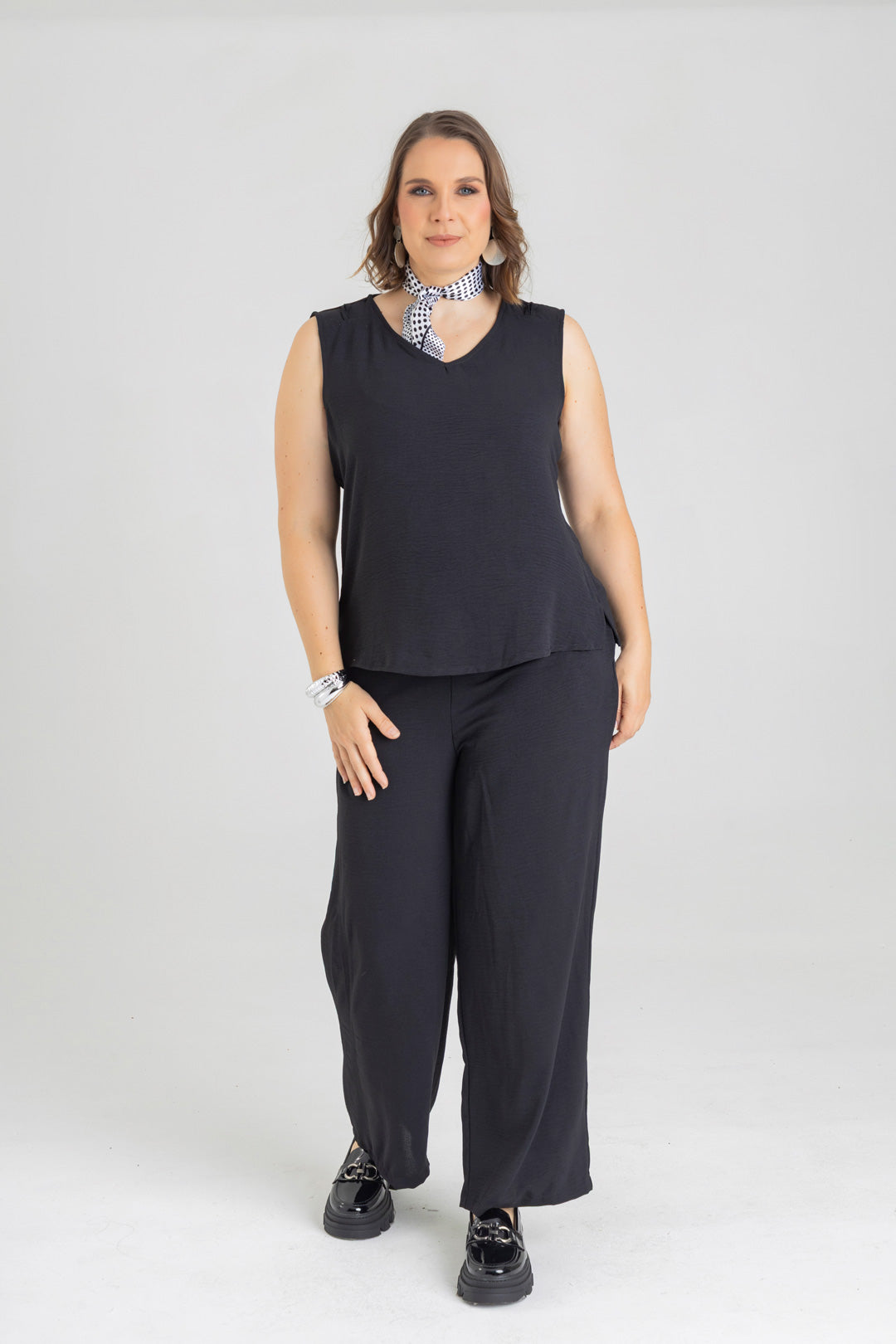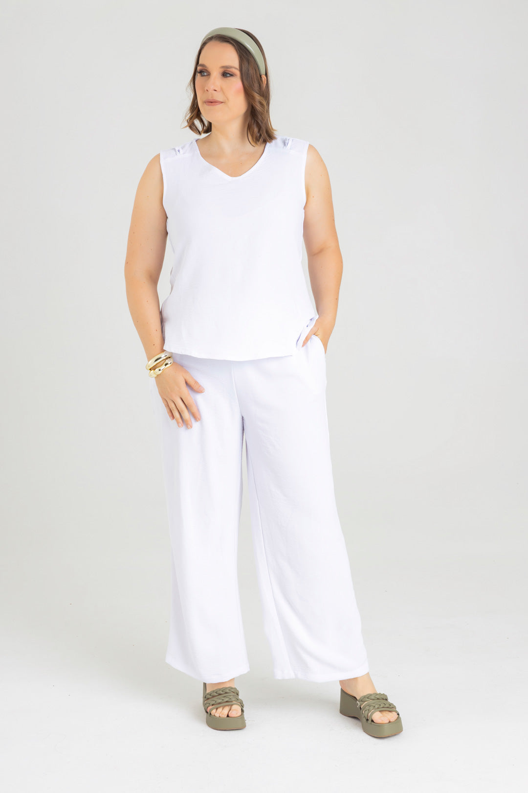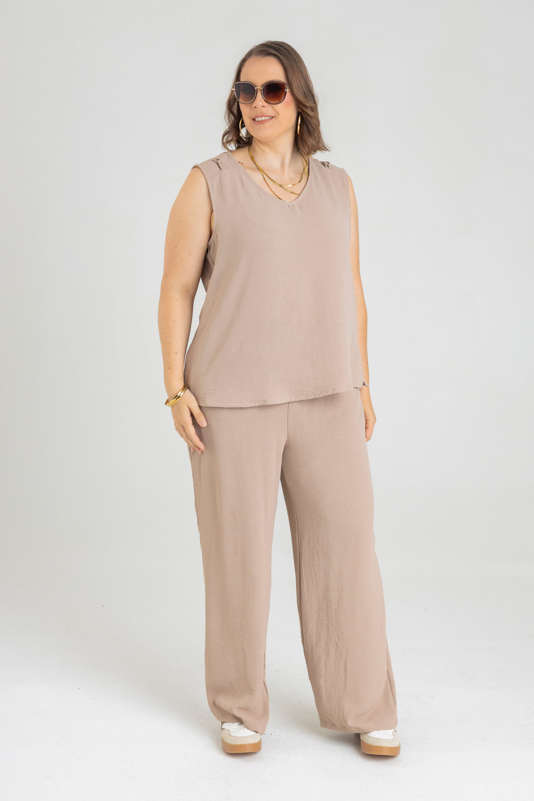 Pantalón silueta fluida con detalle de pasadores en pretina delantera y elástico en posterior. Elaborado en Poliester fondo entero.