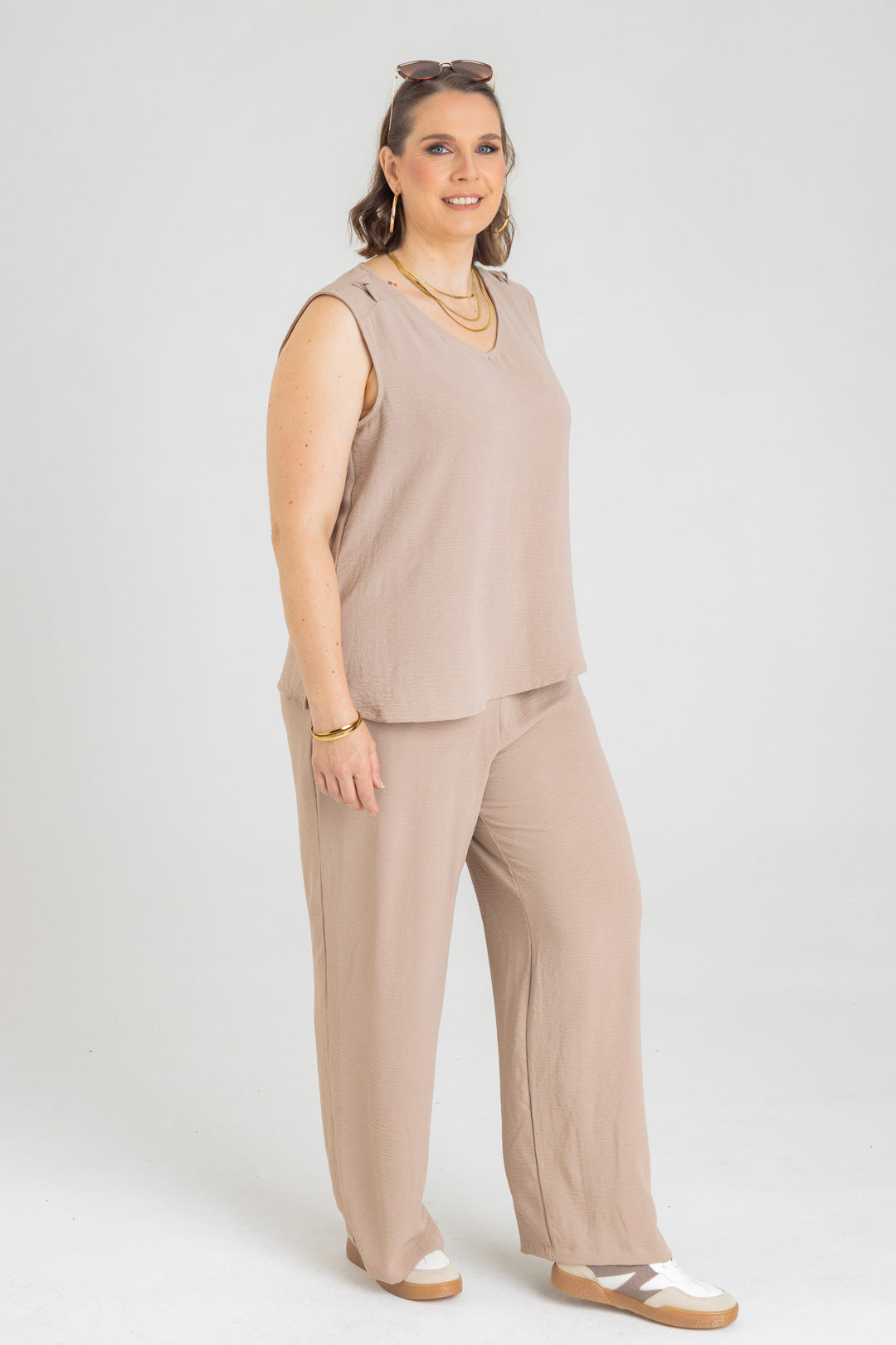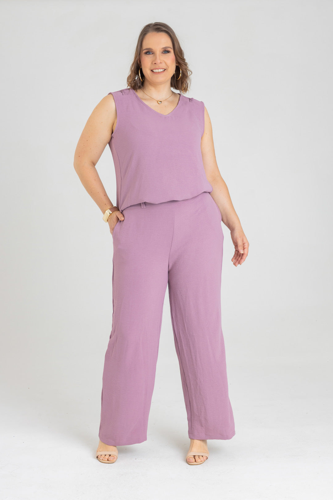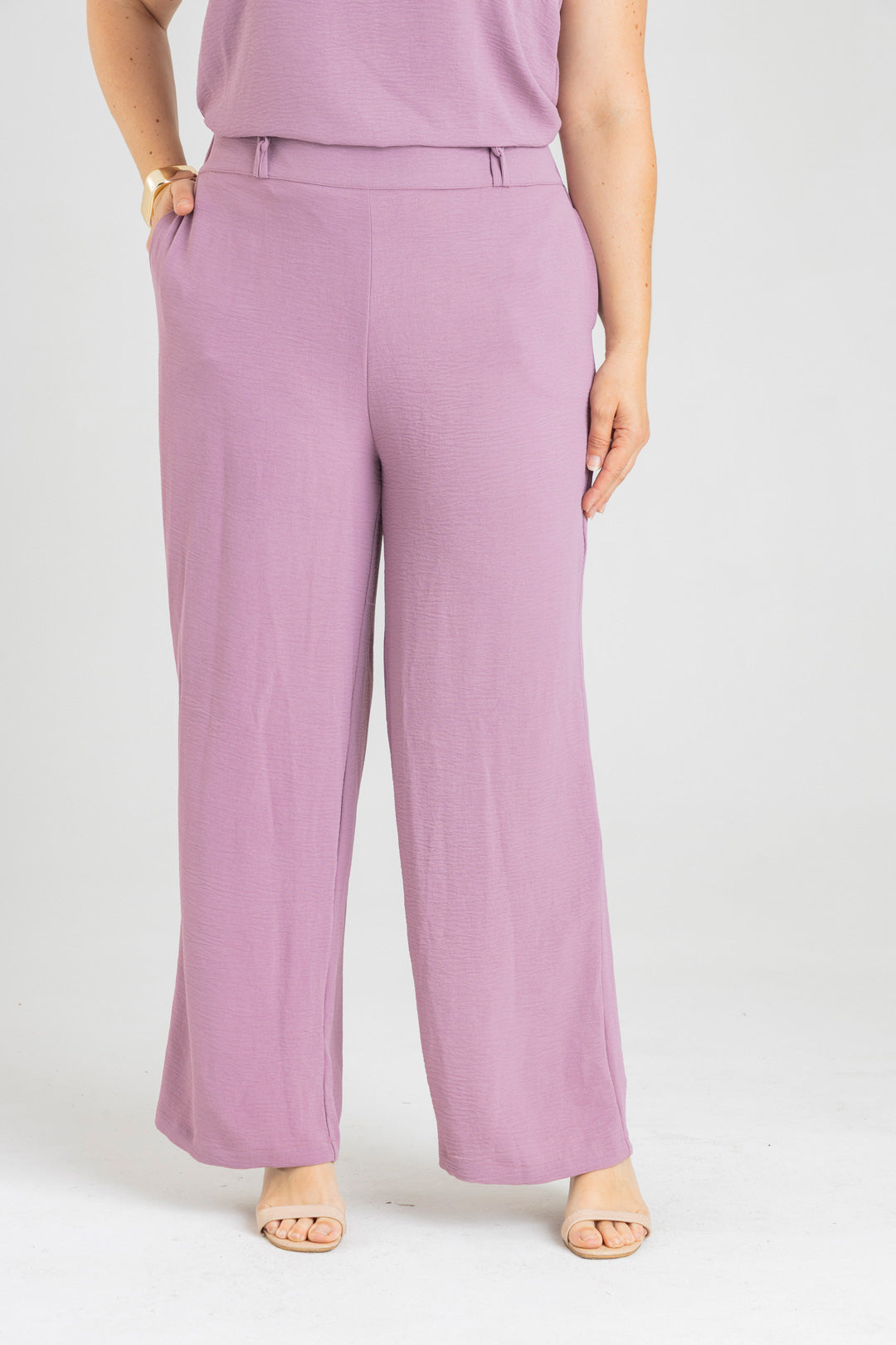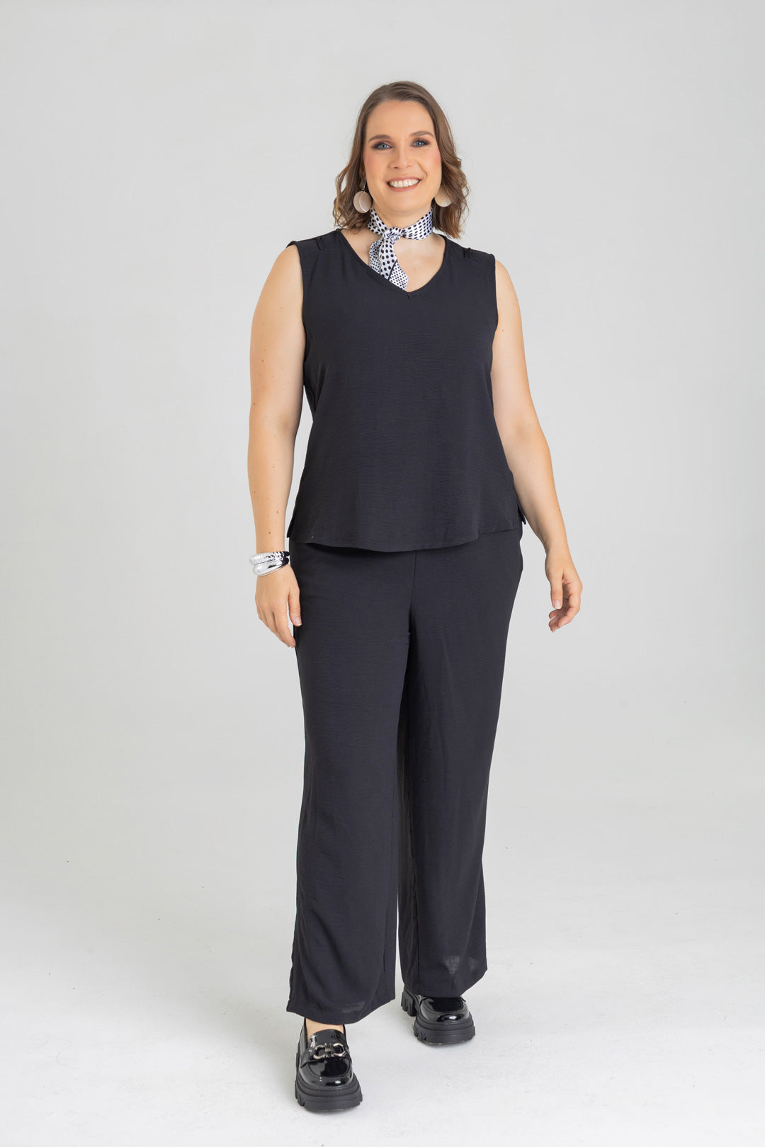 Pantalón silueta fluida con detalle de pasadores en pretina delantera y elástico en posterior. Elaborado en Poliester fondo entero.